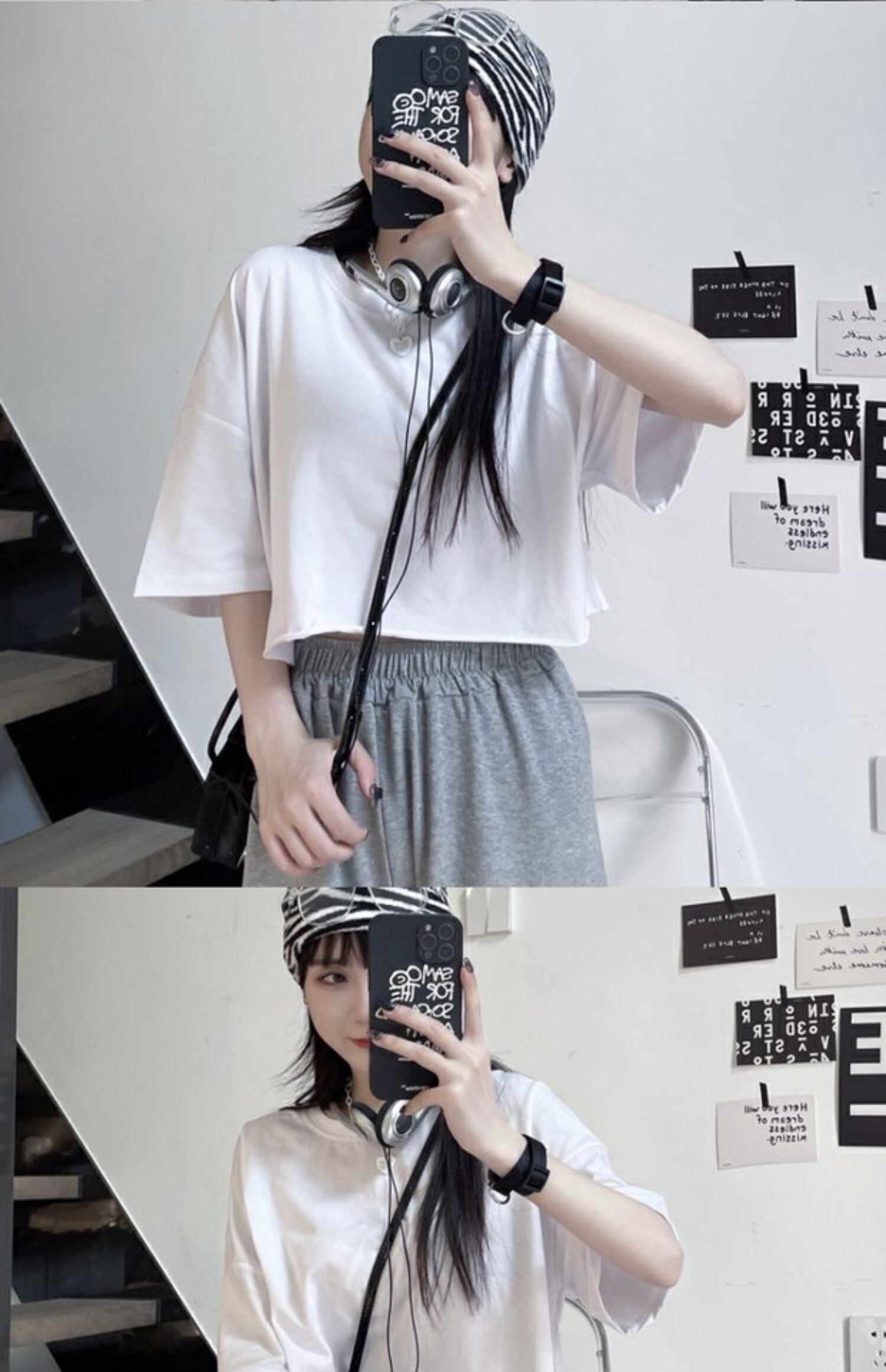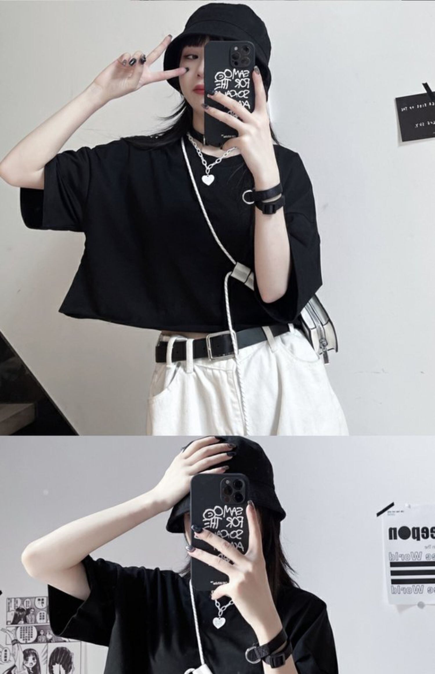 ホワイトショートトップス レディース夏服韓国ファッショントレンドスタンダードルーズTシャツ レトロ 夏物 スタイル デーモン37334239326