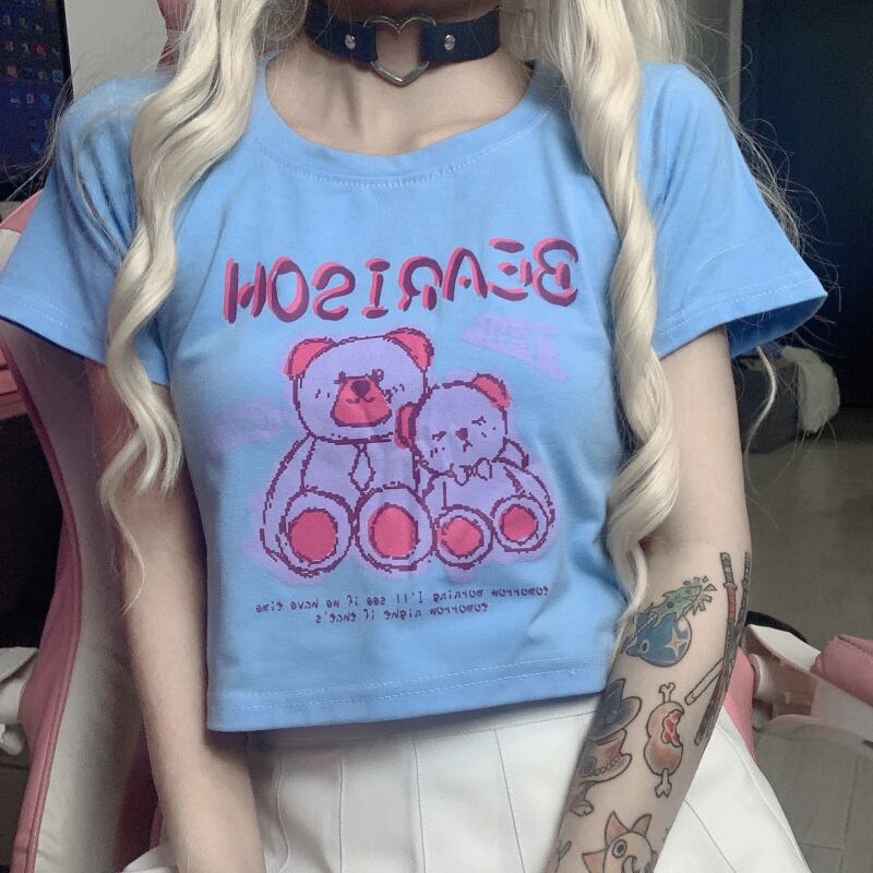 Tシャツレディース夏服韓国ファッショントレンドルーズショートプリント柄半袖スリーブトップス ハーフスリーブ 夏物 スタイル CHIL24980146892