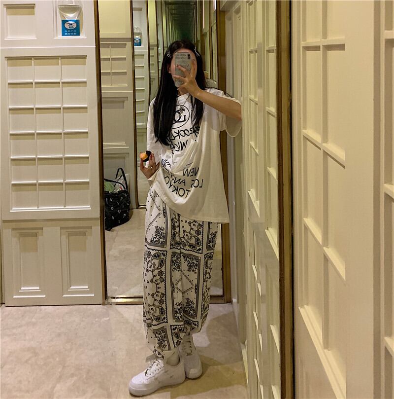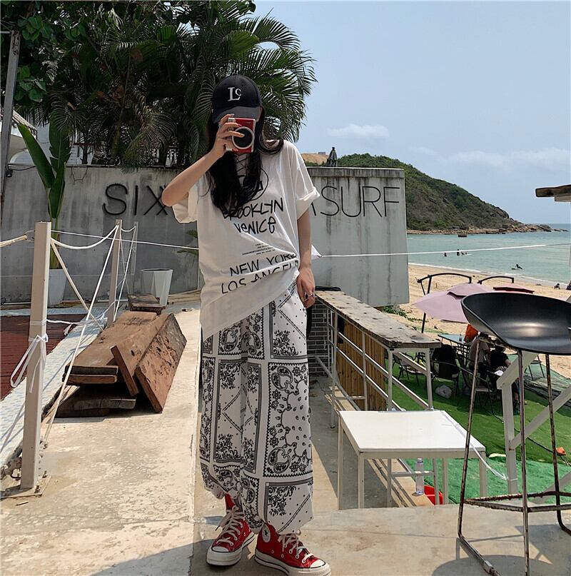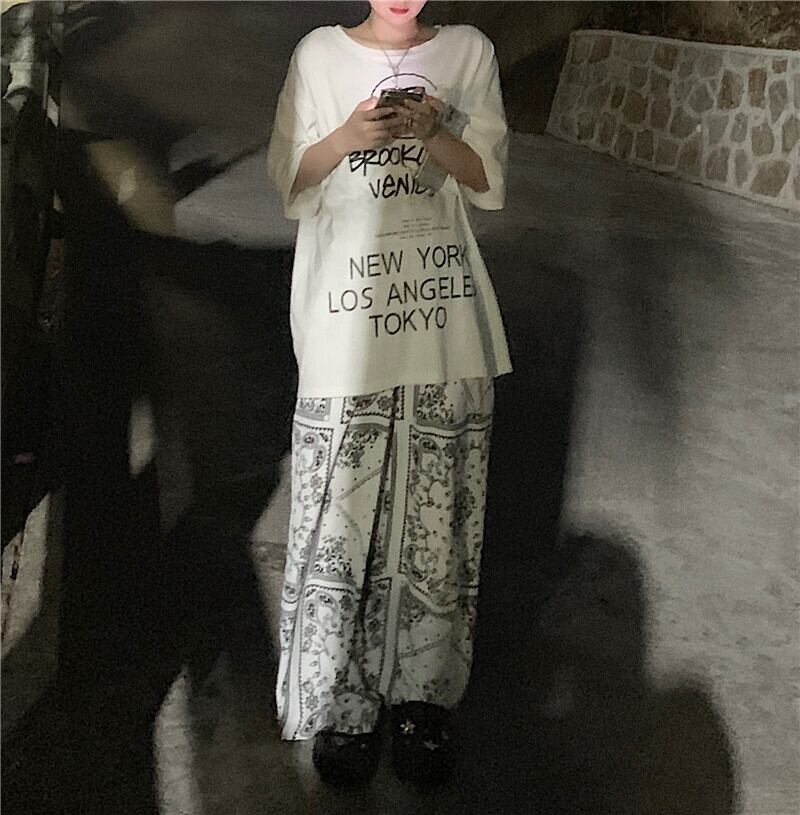 Flowerデザイン ハイウェストウェストワイドレッグパンツ レディース韓国ファッションカジュアルルーズ ワイドパンツ フラワーデザイン ウエスト CHIL19610439502
