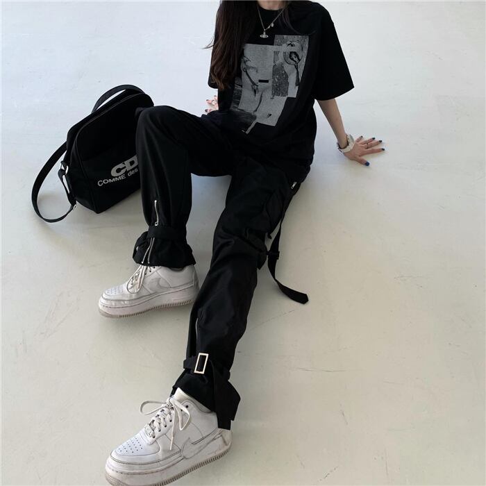 夏服ルーズプリント柄スタンダードスタイルブラックTシャツ レトロ ストリート 原宿 夏物 CHIL4534099579
