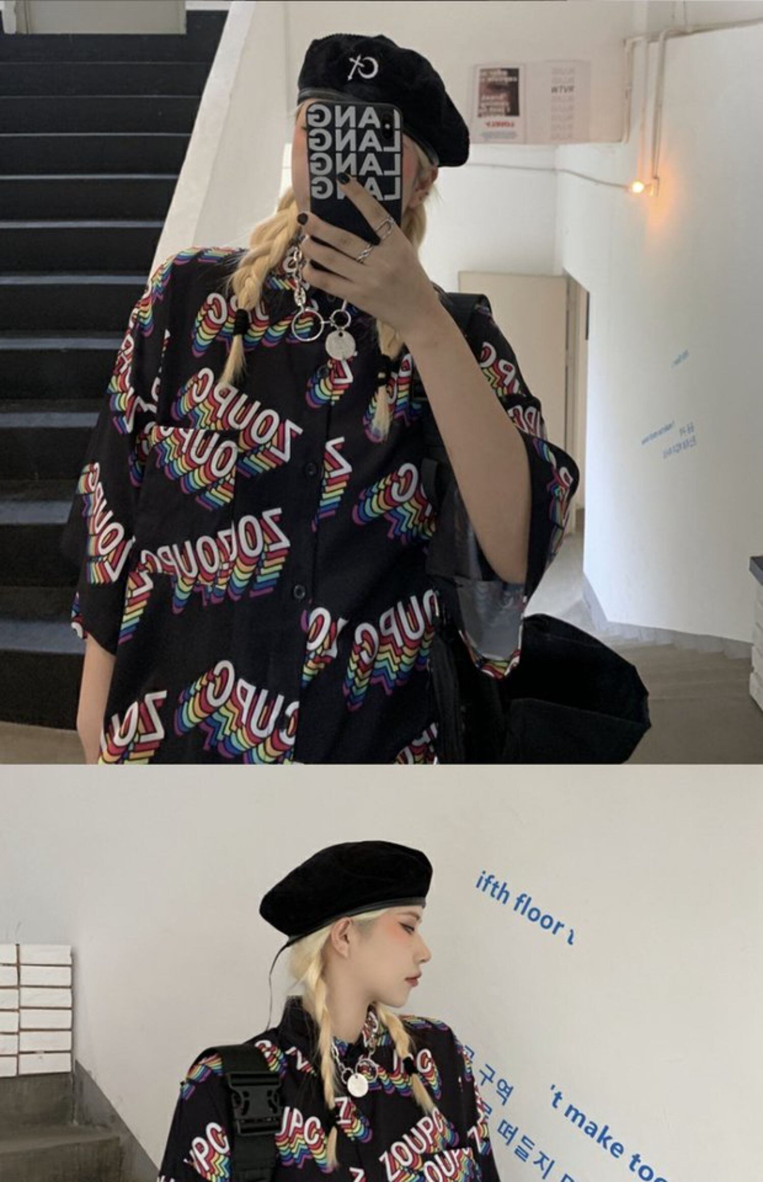 夏服シャツ レディース韓国ファッショントレンドプリントルーズトップス 夏物 ボーイズ スタイル デーモン43443421501