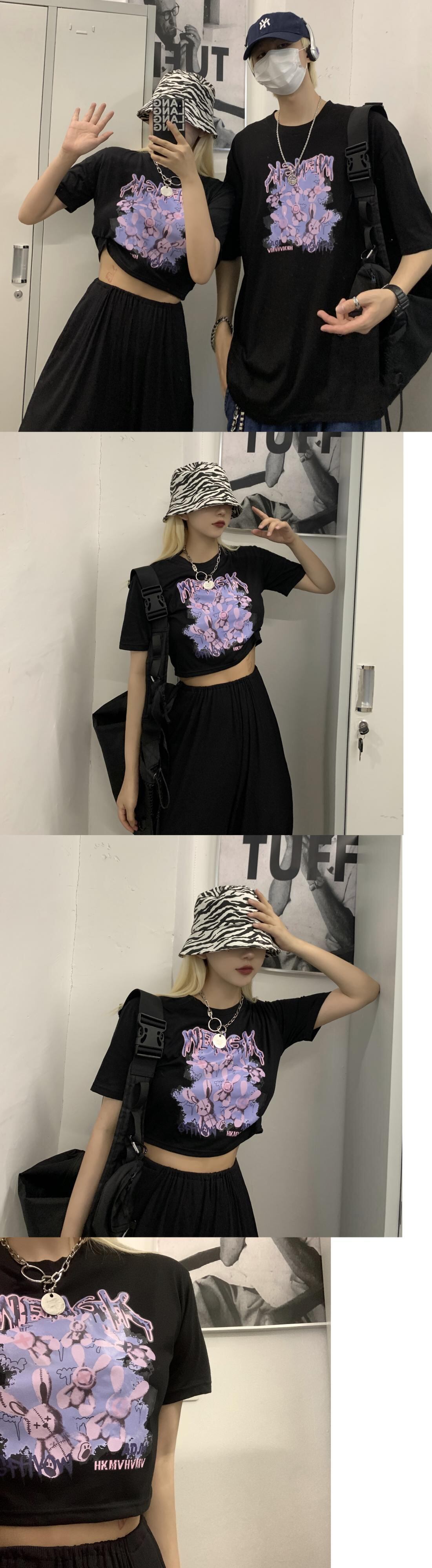 夏服Tシャツレディース韓国ファッショントレンドロングショートルーズプリントトップス 夏物 ボーイズ スタイル デーモン38803885944