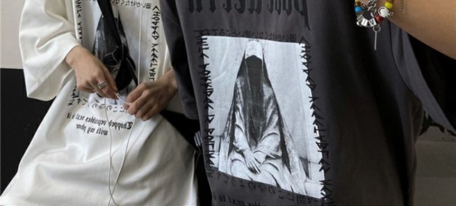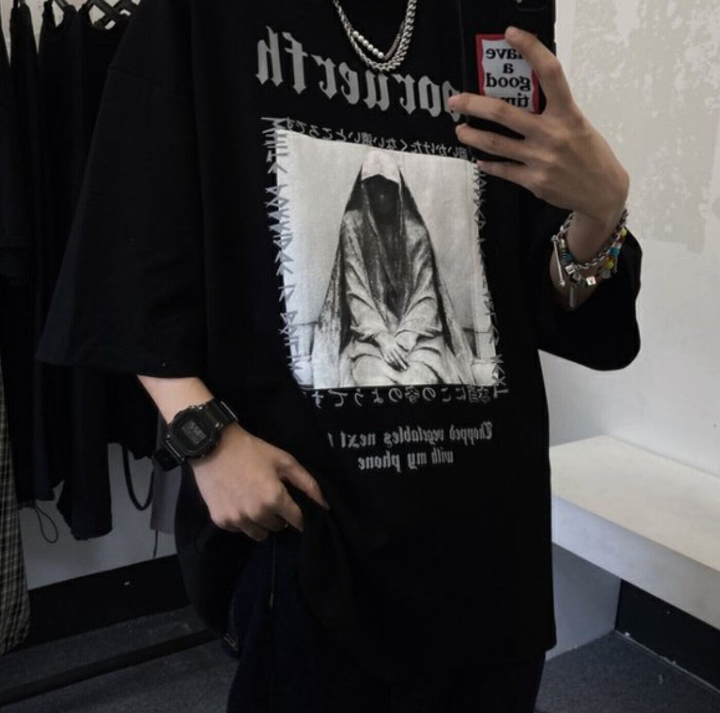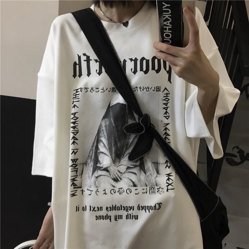 Tシャツレディース夏服韓国ファッショントレンドスタンダードダークプリントホワイトルーズトップス レトロ 夏物 スタイル デーモン4644111408