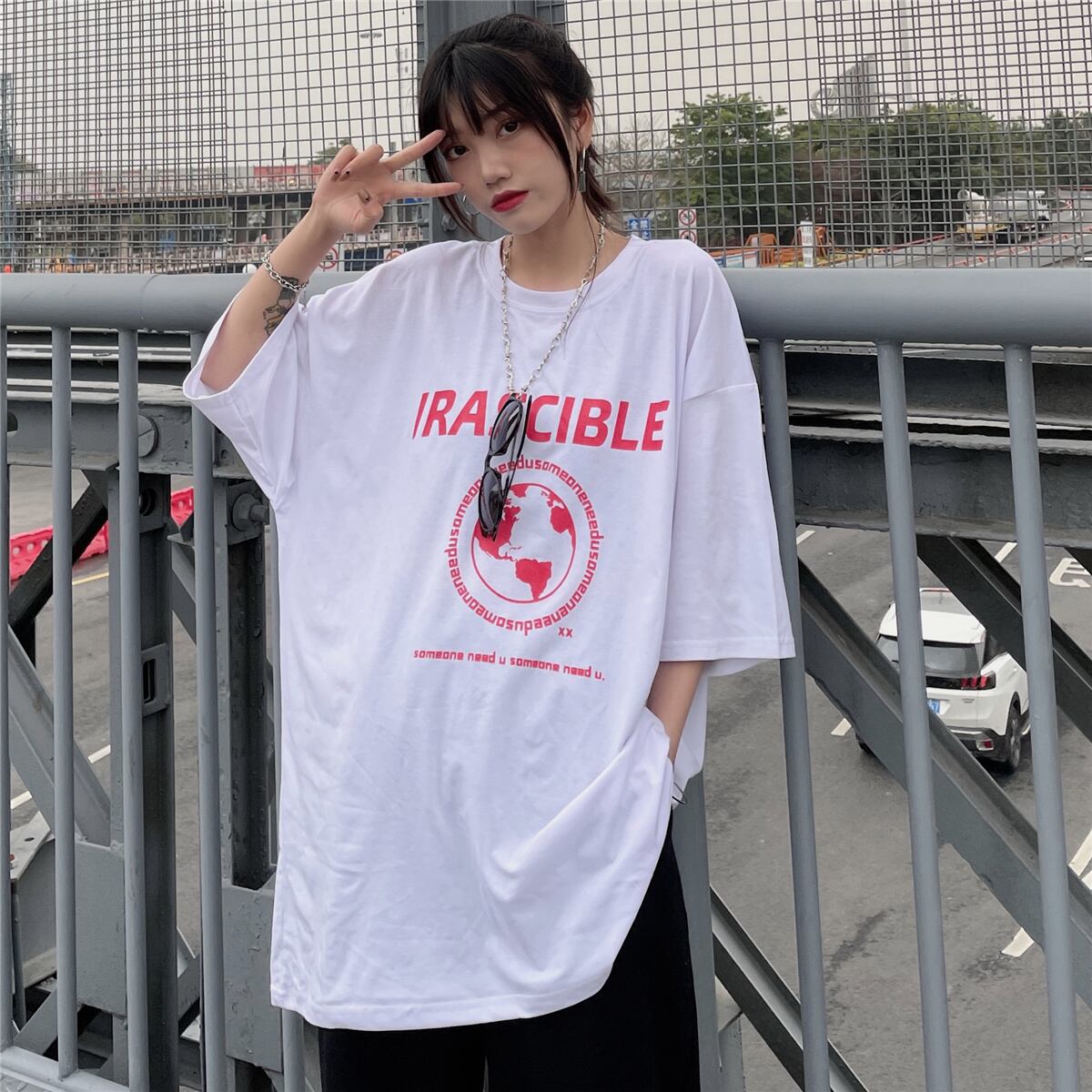 Tシャツレディース夏服韓国ファッショントレンドプリントルーズトップス 夏物 スタイル デーモン57315497604