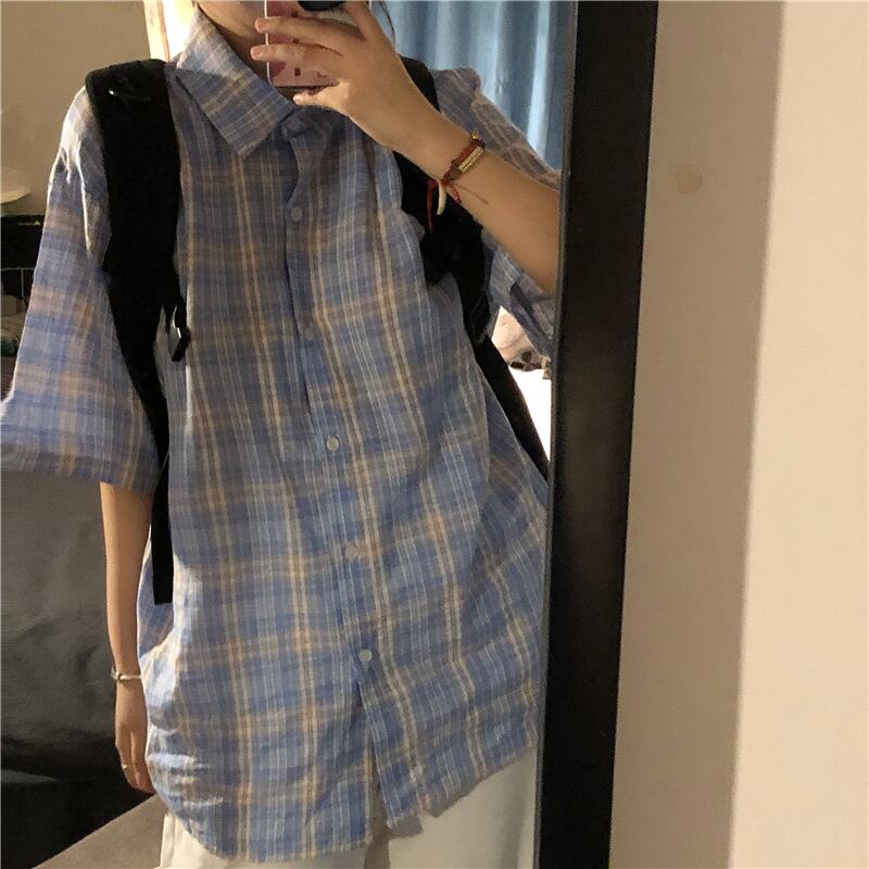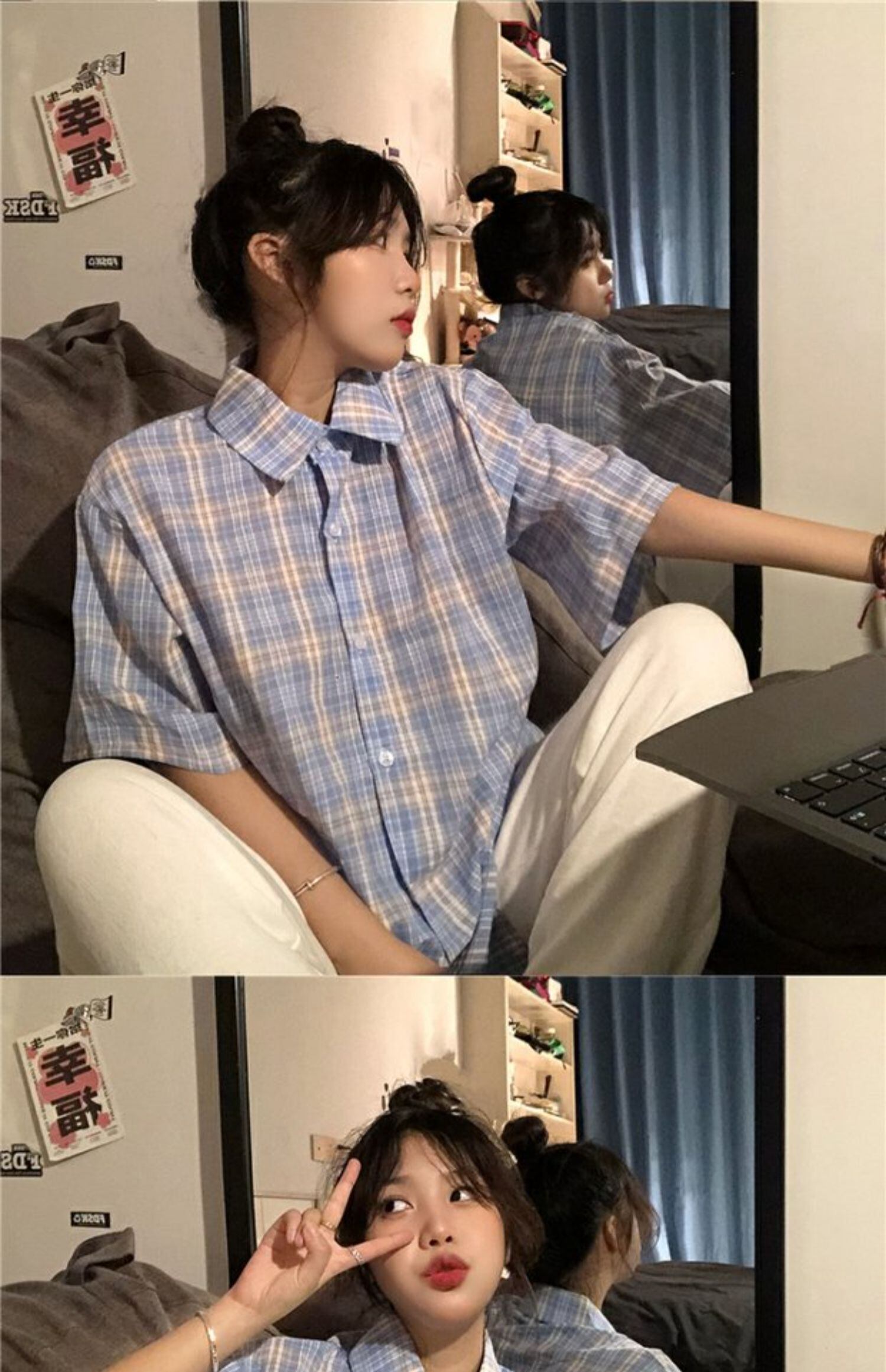 シャツ Tシャツレディース夏服韓国ファッショントレンドスタンダードルーズカジュアル格子柄トップス レトロ 夏物 スタイル デーモン48330212139