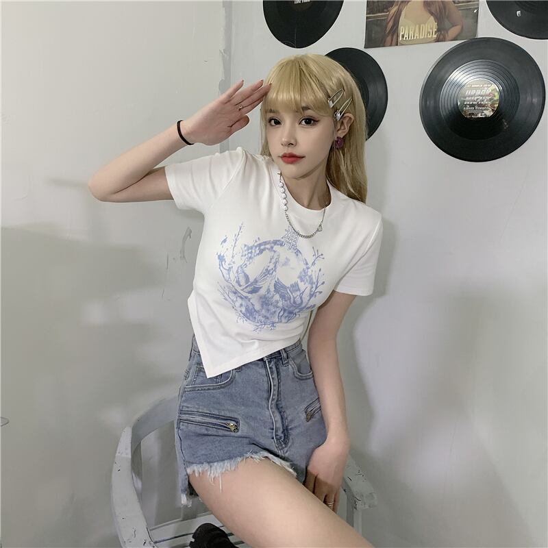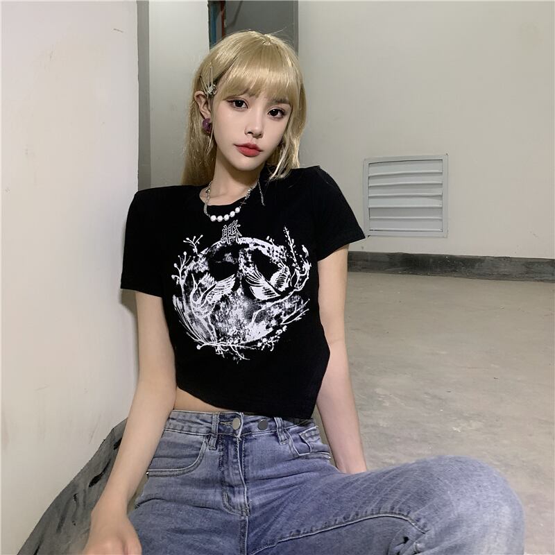 夏服ジャケット レディース韓国ファッショントレンドショートプリントブラックルーズTシャツ 夏物 ボーイズ スタイル デーモン94461417303