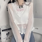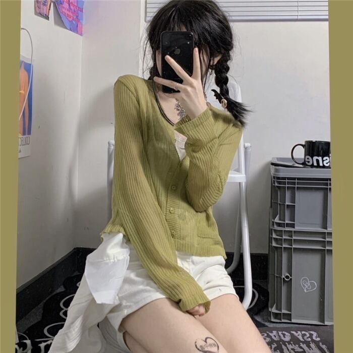 カーディガン夏服韓国ファッショントレンド薄手ルーズシャツ トップス ロング 大人ガーリー スウィート キュート カジュアル 夏物 長袖 デーモン31625432175