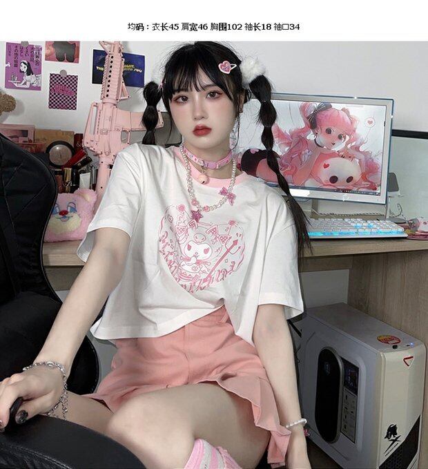ショートジャケット レディース夏服韓国ファッショントレンドスタンダードプリント柄ルーズTシャツ レトロ 夏物 スタイル デーモン72819427218