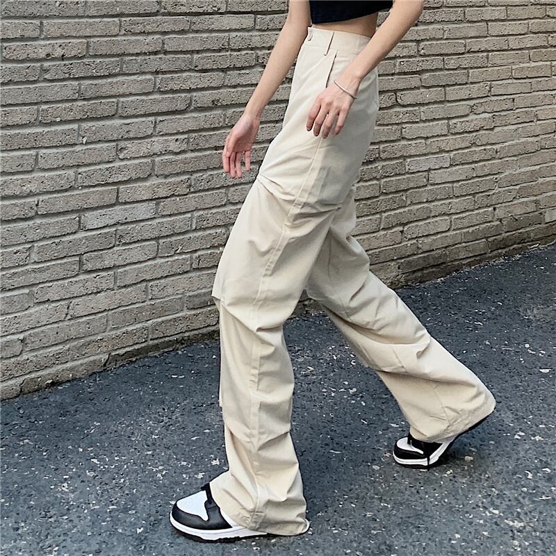 レディース夏服トレンドプリーツワイドレッグパンツ カーキルーズハイウェストウェスト 夏物 ワイドパンツ ボーイズ ウエスト デーモン93882142787