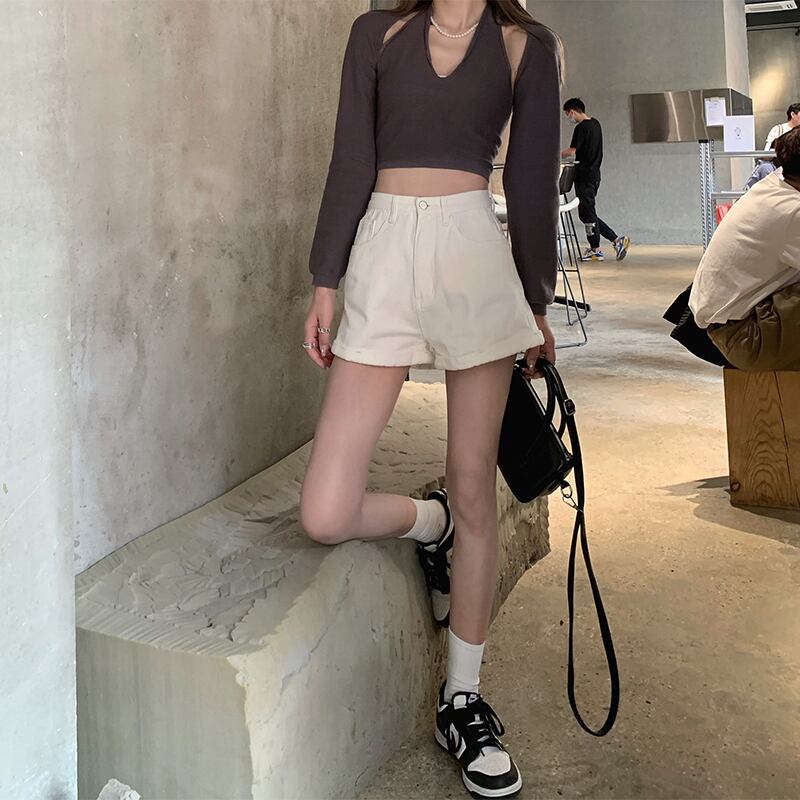 ショーツ ルーズ薄手パンツ Aラインハイウェスト コットン ウエスト CHIL38334544880