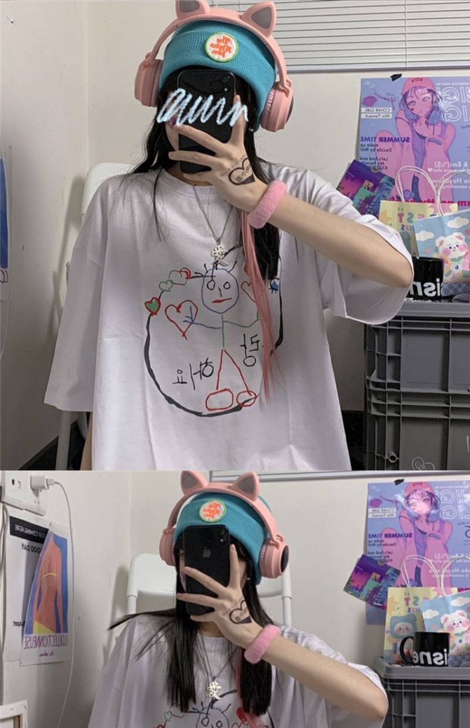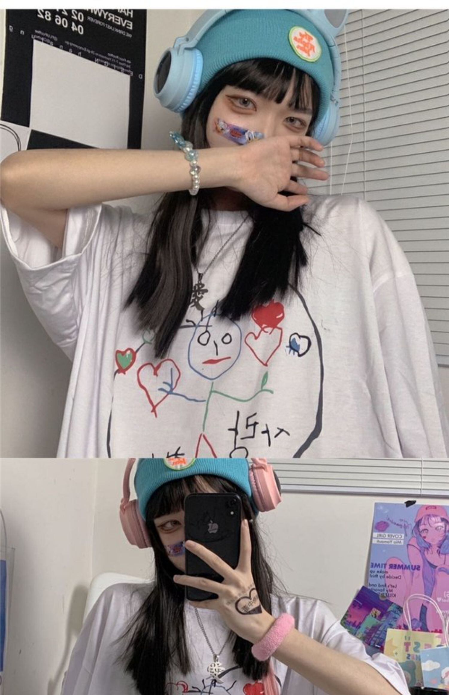 ホワイトTシャツレディース夏服韓国ファッショントレンドプリントルーズトップス 夏物 スタイル デーモン69306065525