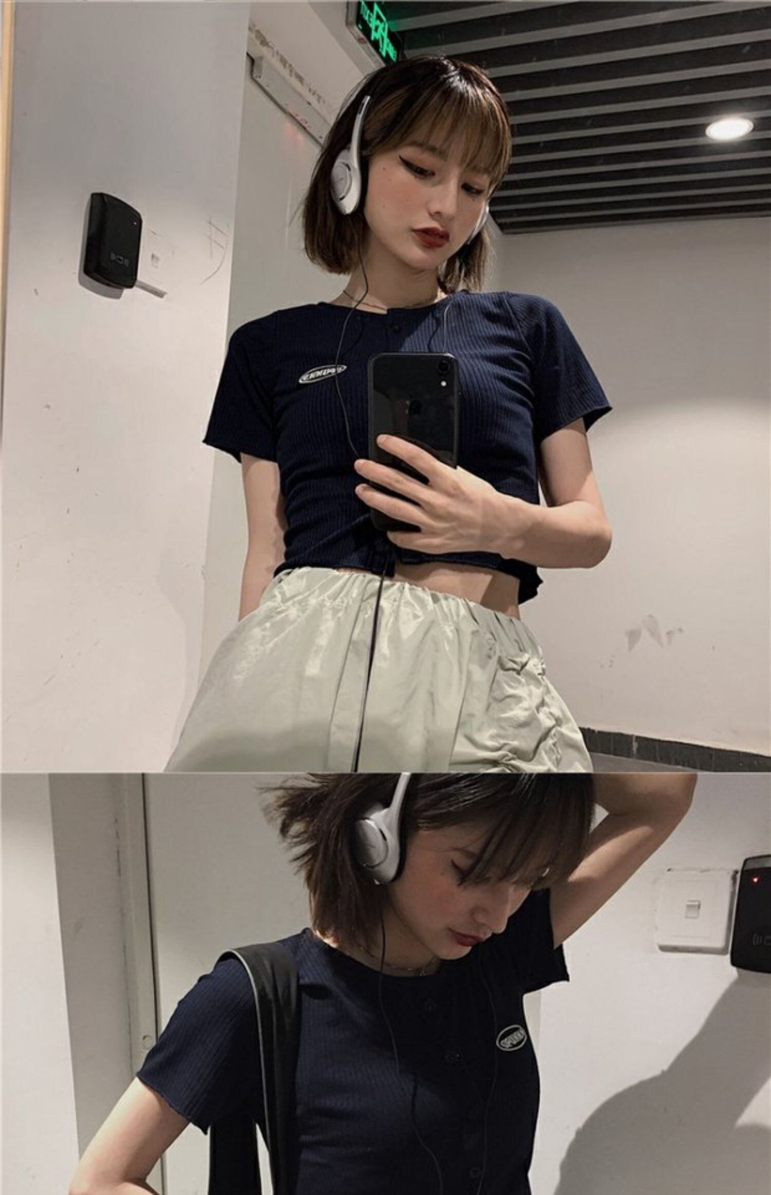 ショートニットカーディガン夏服韓国ファッショントレンドプリントスリムトップス 夏物 スタイル デーモン75982974471