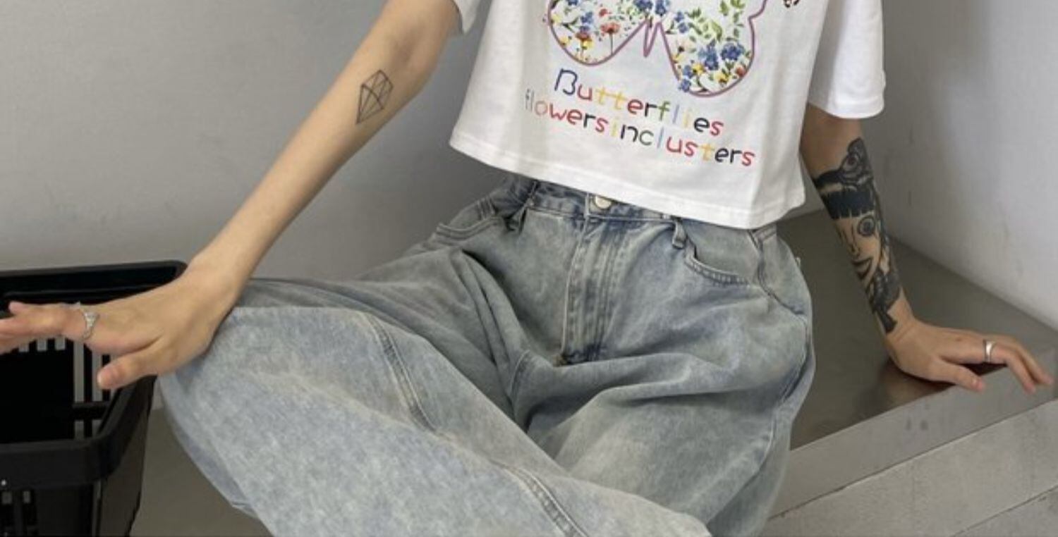 ショートTシャツレディース夏服韓国ファッショントレンドスタンダードButterflyデザイン プリント柄ホワイトルーズトップス レトロ 夏物 スタイル デーモン10439287961