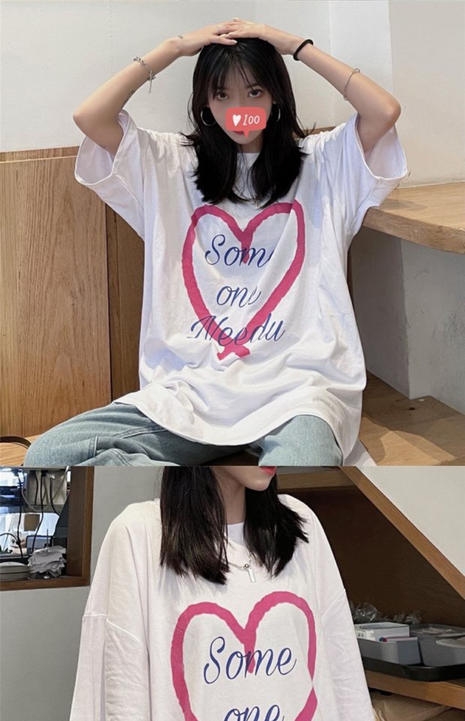 夏服Tシャツレディース韓国ファッショントレンドプリントホワイトルーズトップス 夏物 スタイル デーモン60572671797