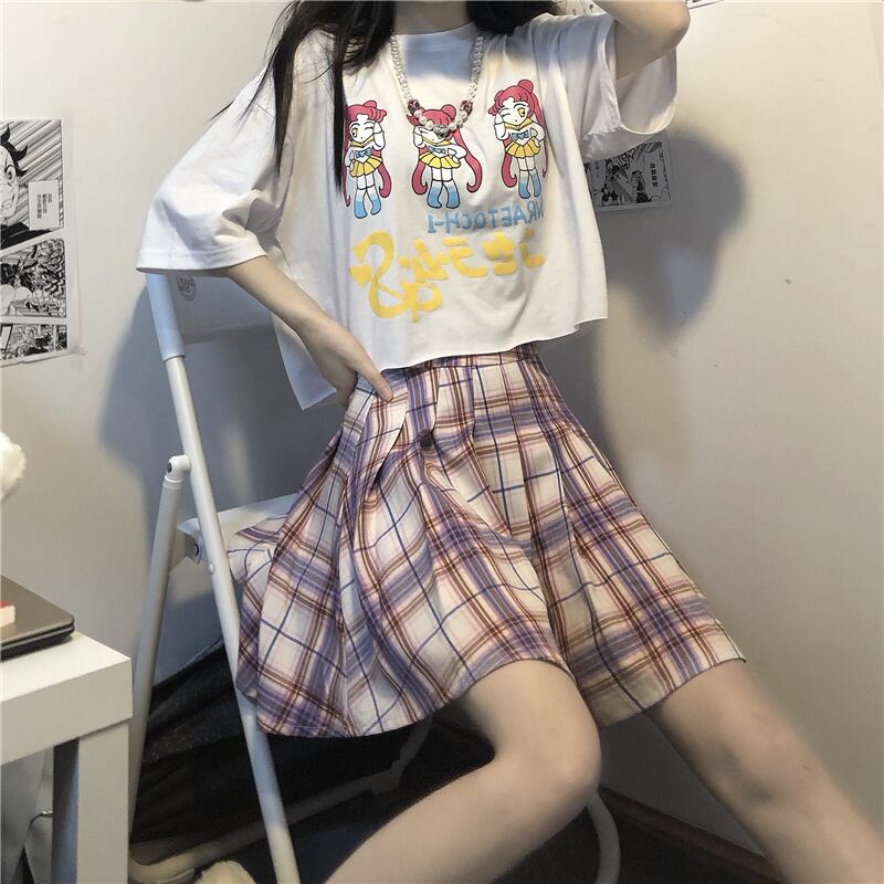 夏服ショートTシャツレディース韓国ファッショントレンドプリントホワイトルーズトップス 大人ガーリー スウィート キュート カジュアル 夏物 スタイル デーモン56178202125