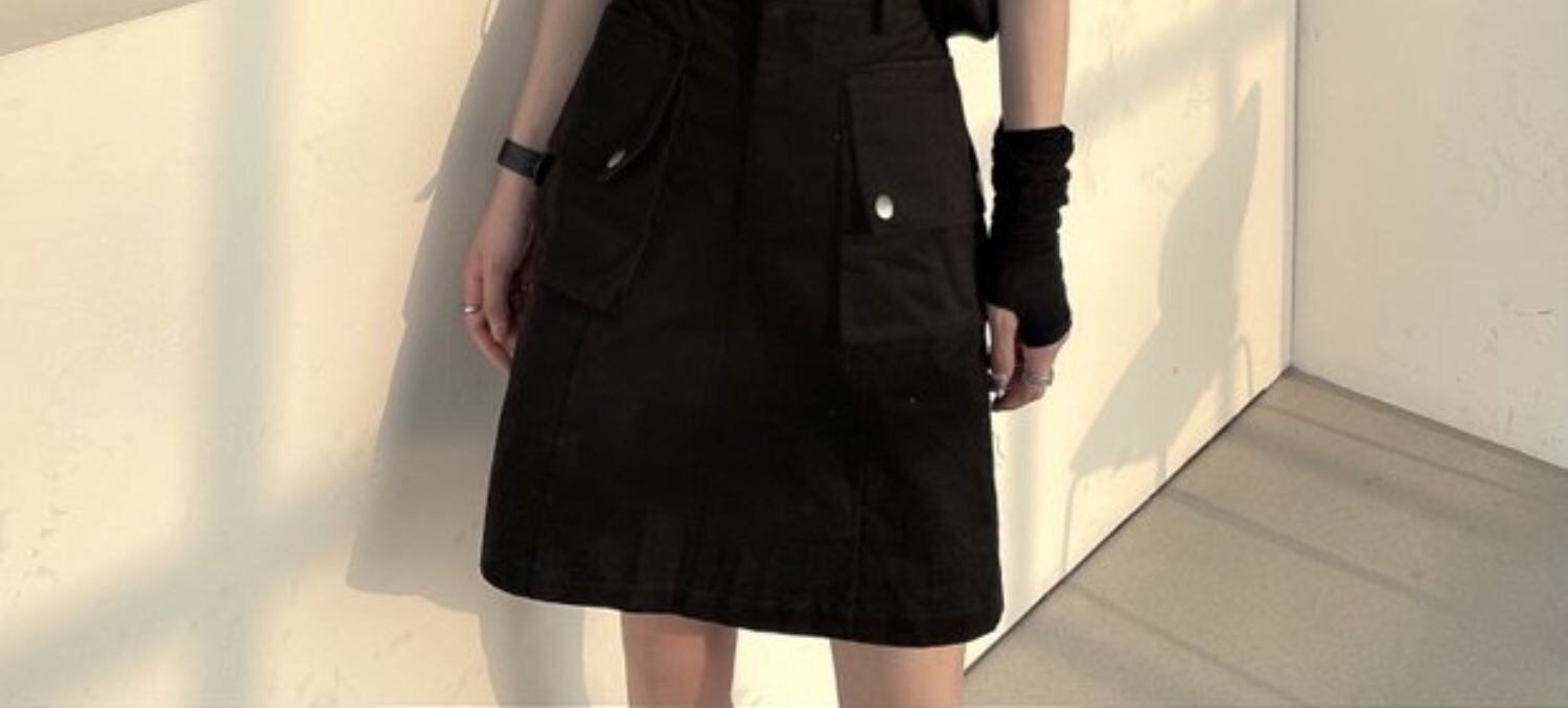 ブラックスカート レディース夏服トレンドハイウェスト薄手Aラインダーク 夏物 ウエスト デーモン32182291511