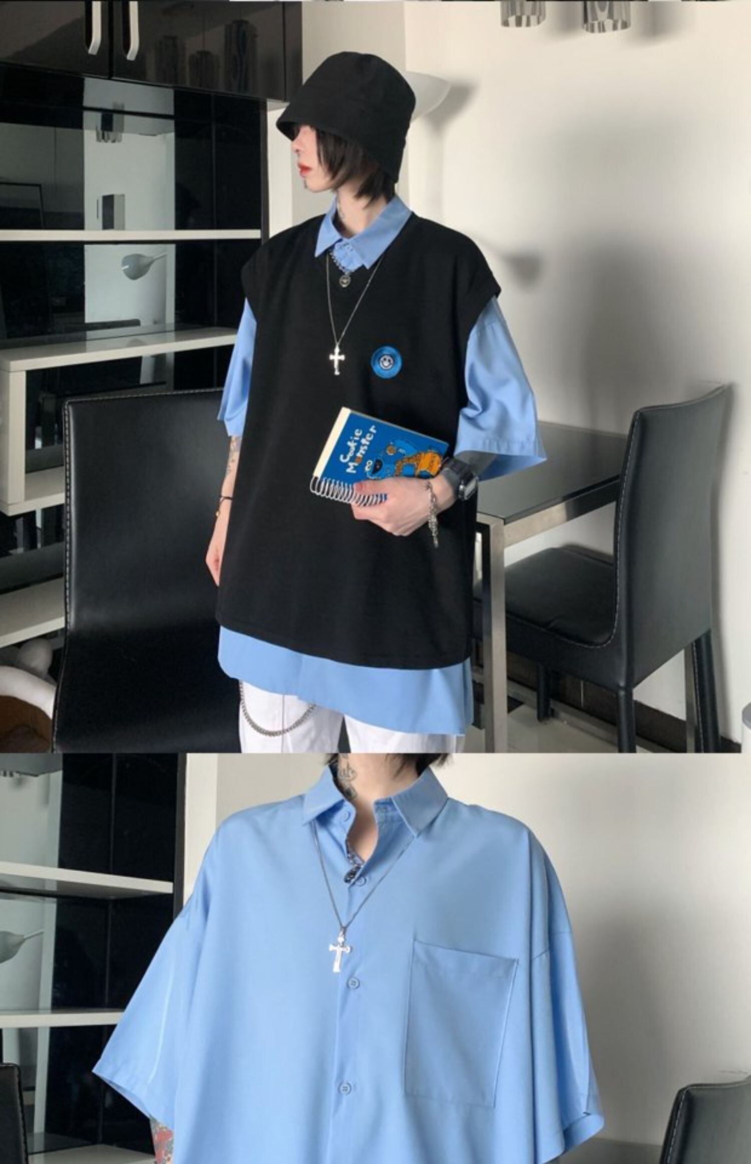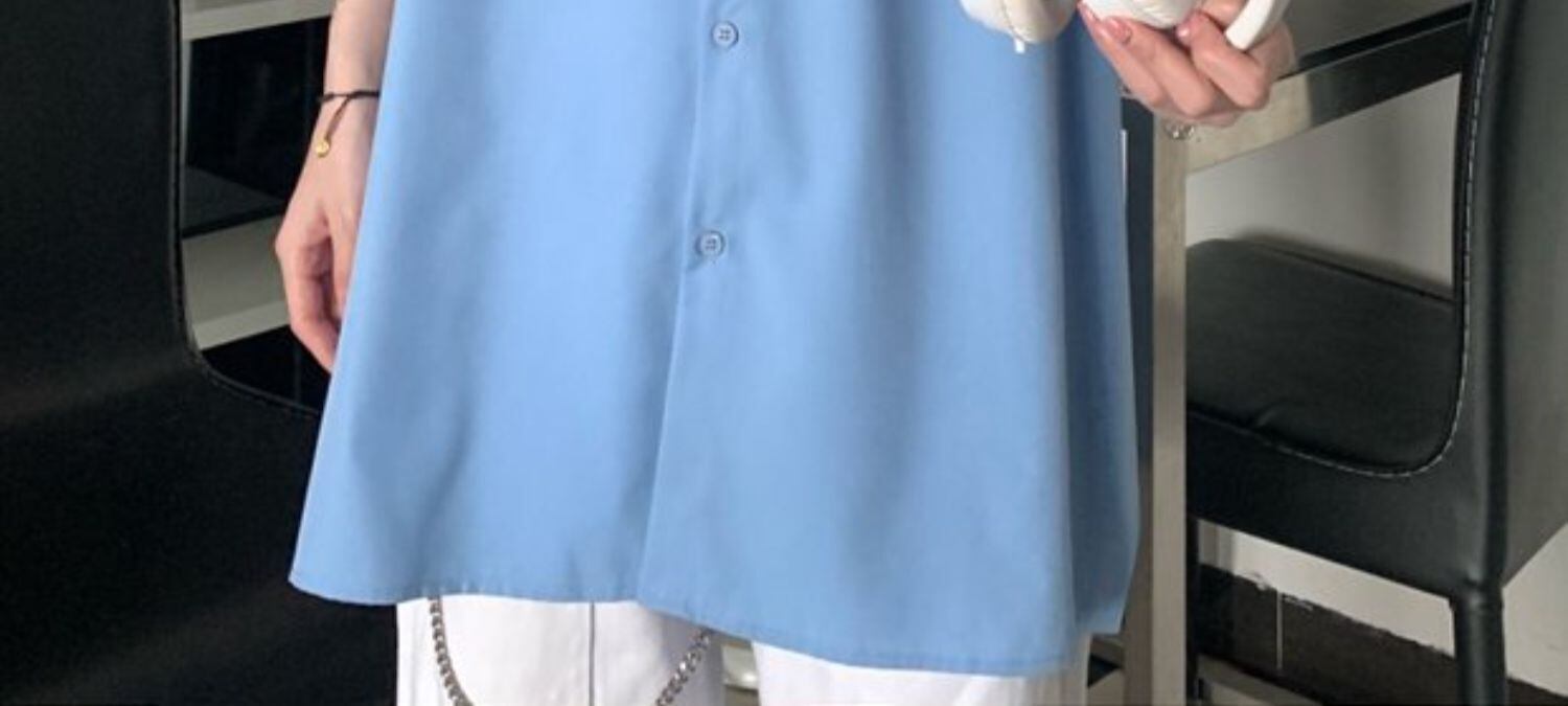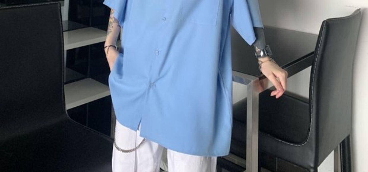 スタンダードブルーシャツ レディース夏服韓国ファッショントレンドルーズトップス レトロ 夏物 スタイル デーモン35680568713