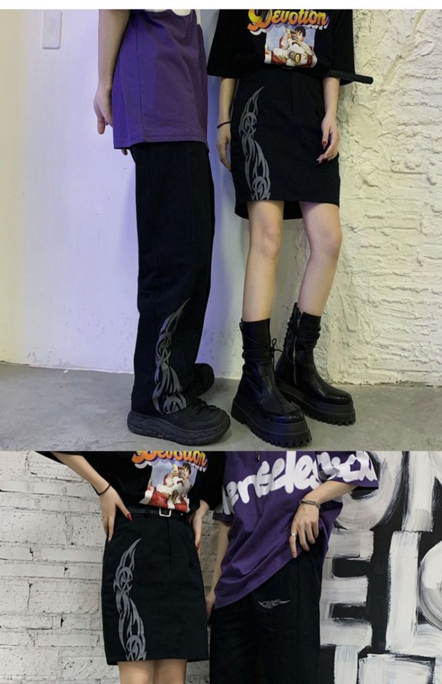 夏服カジュアルパンツ レディーストレンドスタイルプリントルーズ薄手ハイウェストウェストショートスカート 原宿 夏物 ボーイズ ウエスト デーモン88455648991