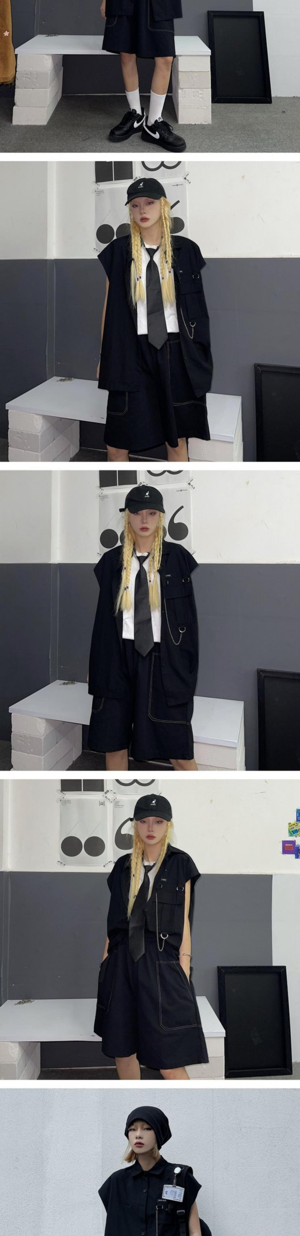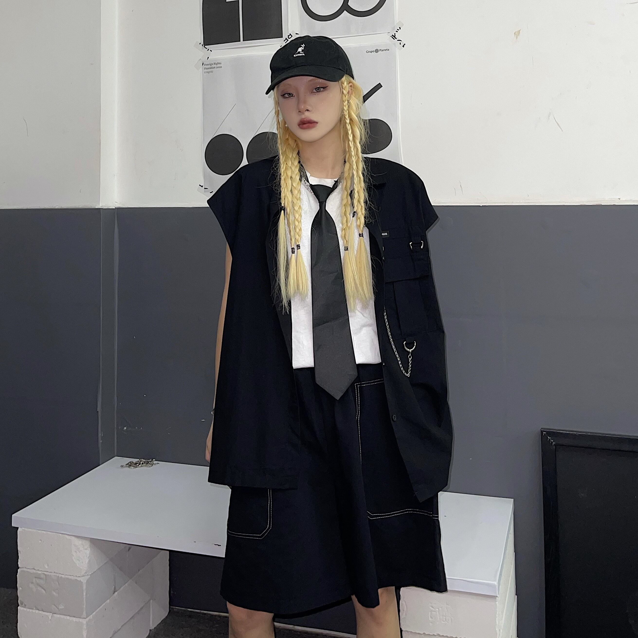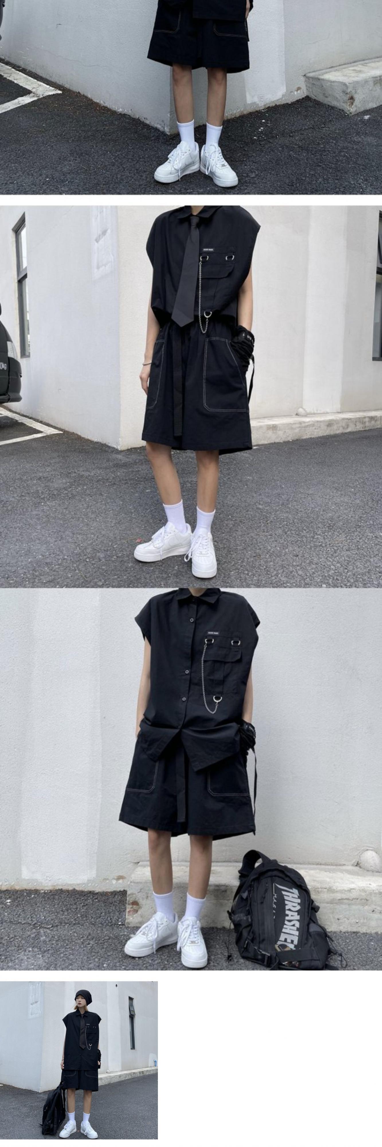 パンツ レディース夏服トレンドスタイルハイウェストウェストルーズカジュアルショーツ チェーン ノースリーブシャツ 夏物 ウエスト デーモン52981508344