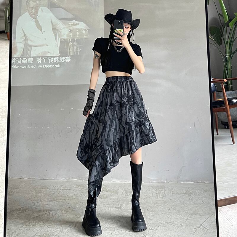 夏服スカート レディース韓国ファッショントレンドダークハイウェストウェスト薄手 夏物 ボーイズ スタイル ウエスト デーモン2384067081