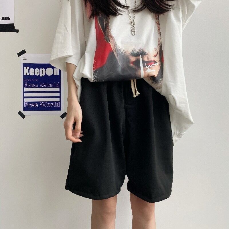 パンツショーツ レディース夏服トレンドブラックチェーン パンツ ルーズハイウェストウェスト 夏物 ボーイズ ウエスト デーモン80892510784