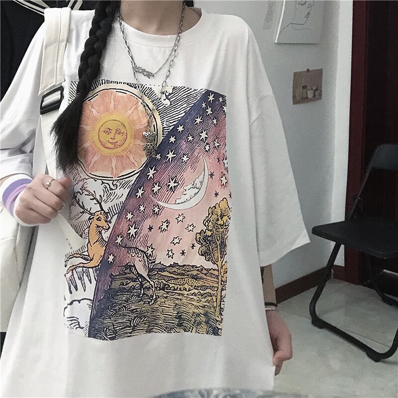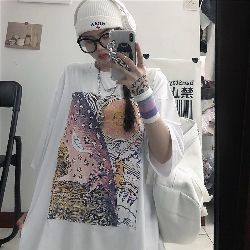 Tシャツレディース夏服韓国ファッショントレンドプリント柄ルーズトップス 夏物 スタイル デーモン43778132123