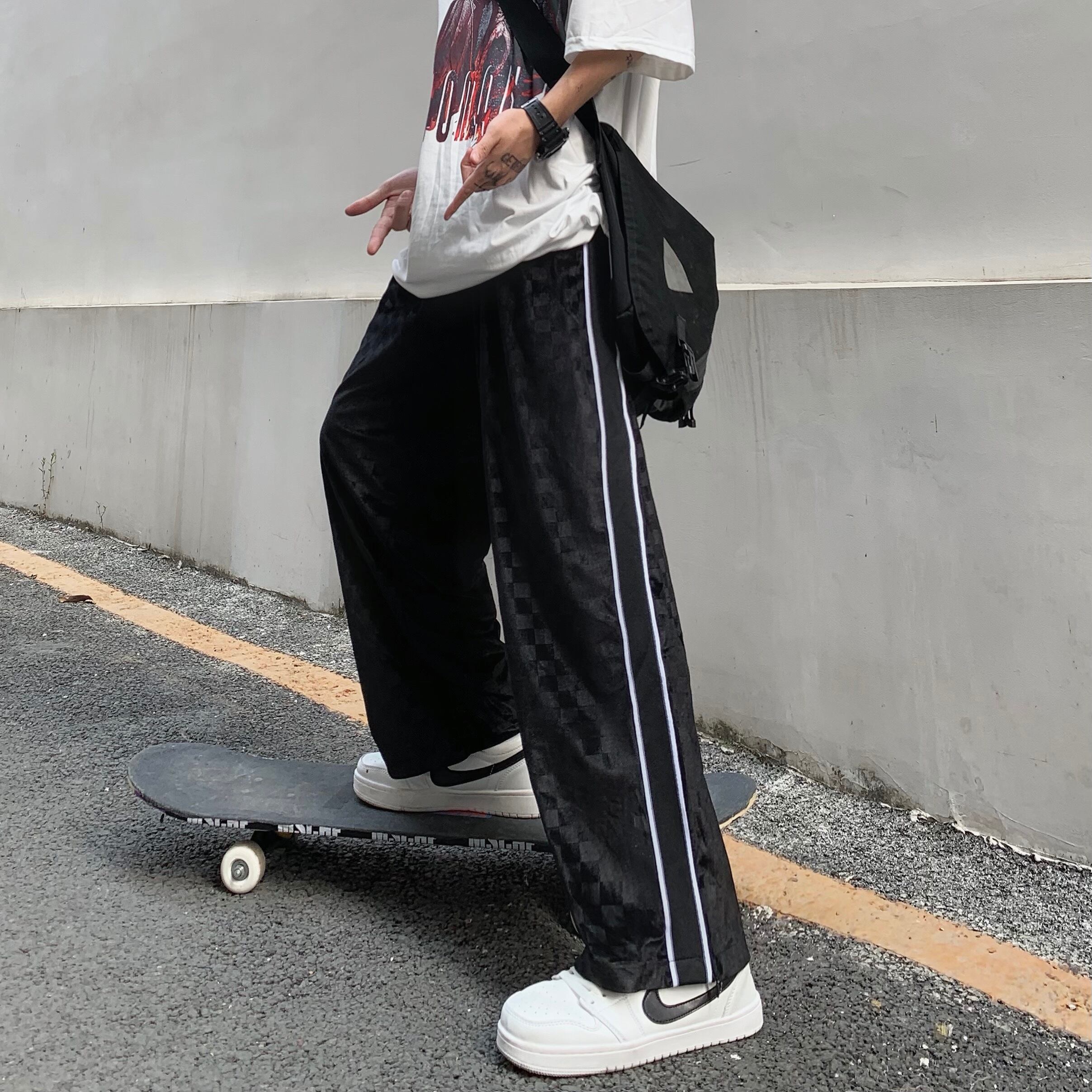 パンツ 夏服トレンドダークパターンルーズハイウェストウェストスリム ストリート 夏物 ボーイズ ウエスト デーモン98362490583