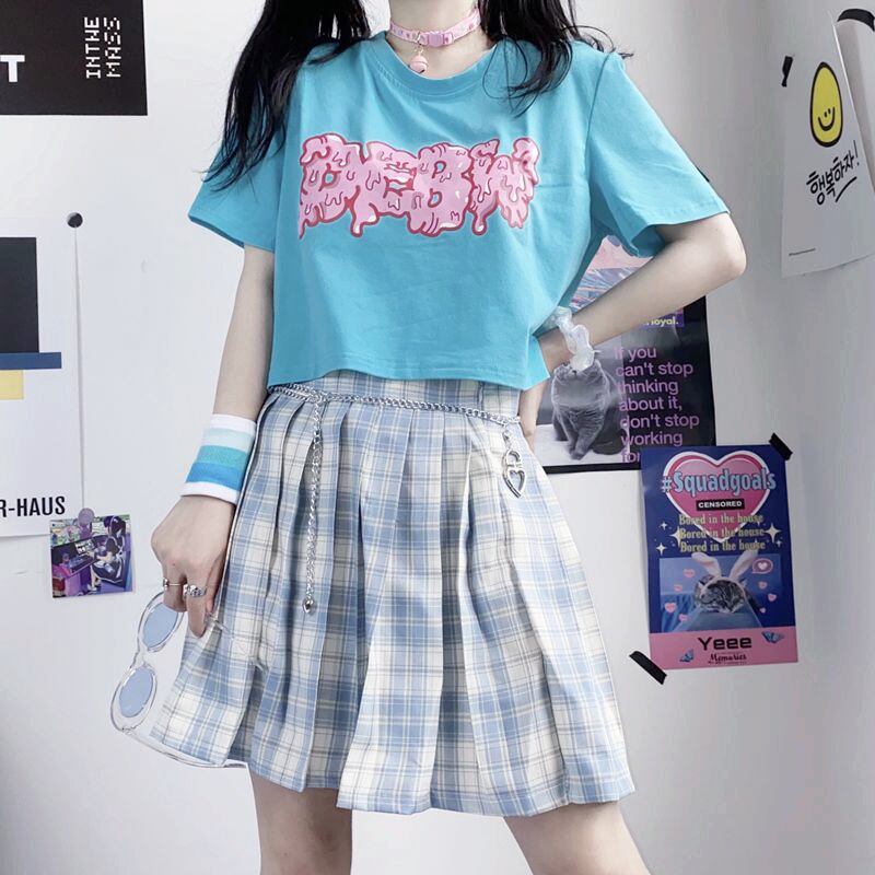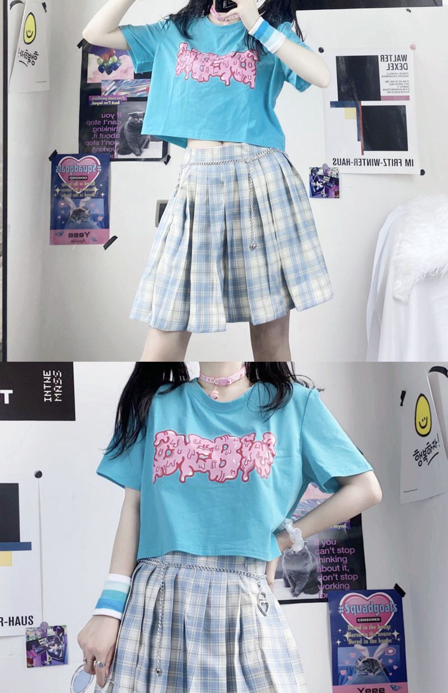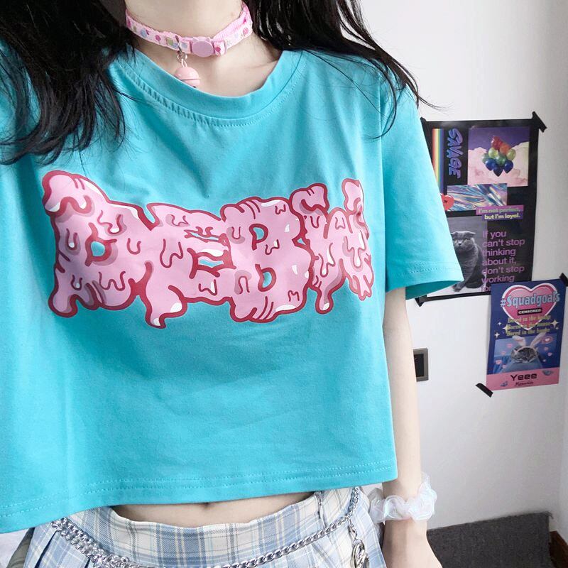 ショートTシャツレディース夏服韓国ファッショントレンドスタイルプリントトップス 原宿 夏物 デーモン95879077662