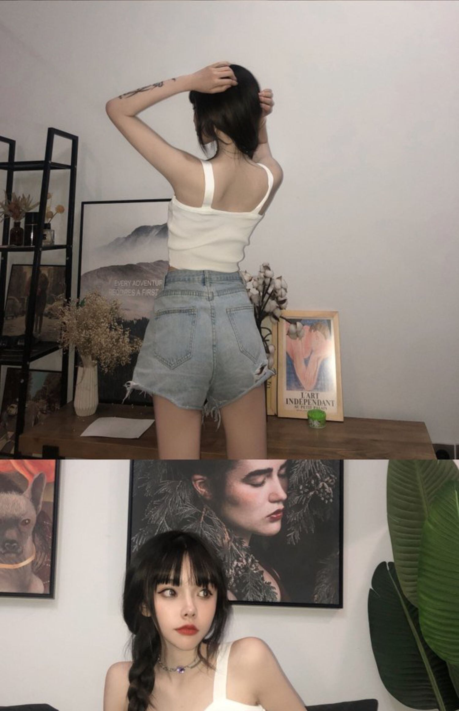 ホワイト夏服トレンドショートトップス 夏物 デーモン23181409359