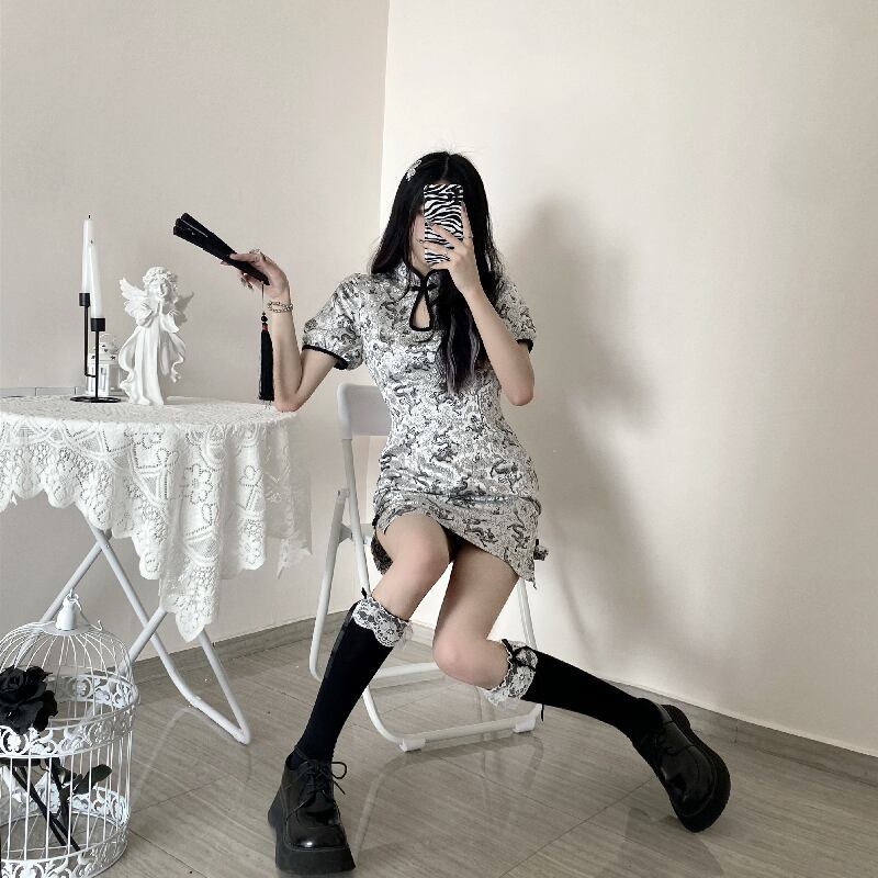 韓国ファッショントレンドスタンダードパターンスリムワンピーススカート レトロ CHIL88816581197