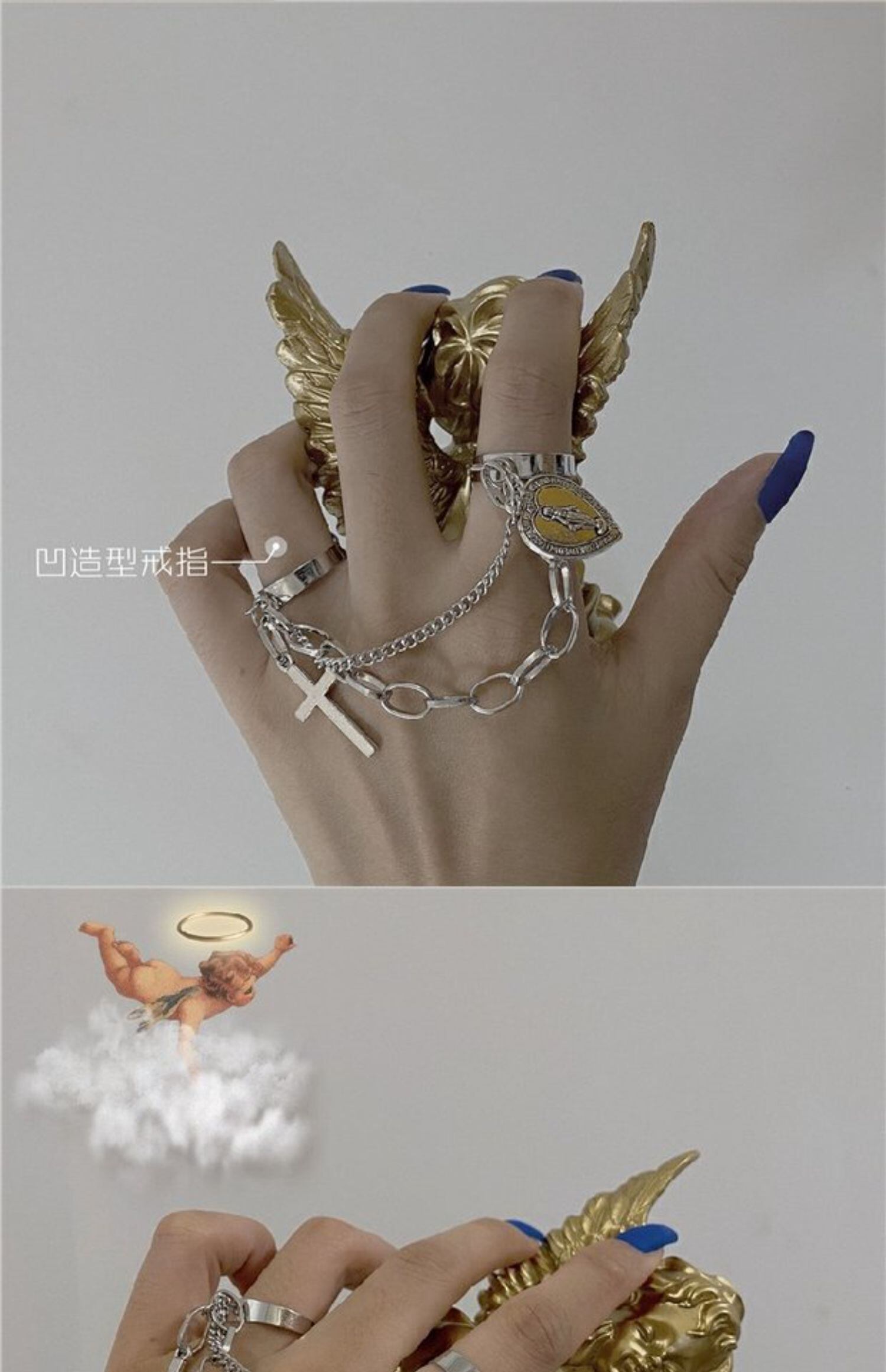 リング レディーストレンドスタンダードクロスダブルアクセサリー レトロ 指輪 デーモン27841805568