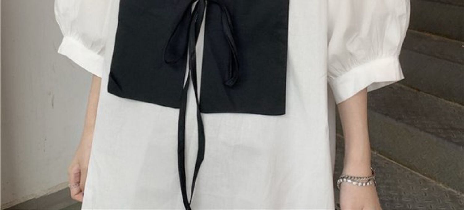 シャツ レディース夏服韓国ファッショントレンドホワイトルーズトップス ブラックショール 夏物 スタイル デーモン27000907851