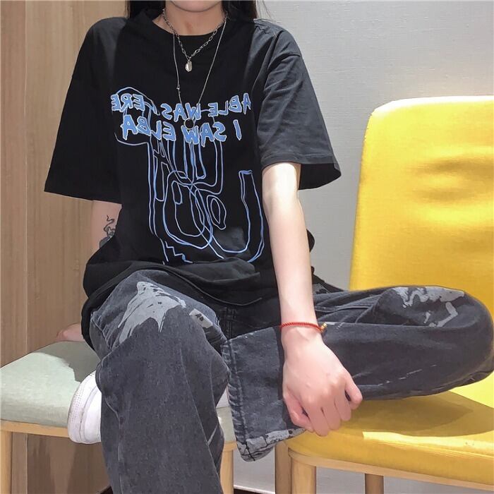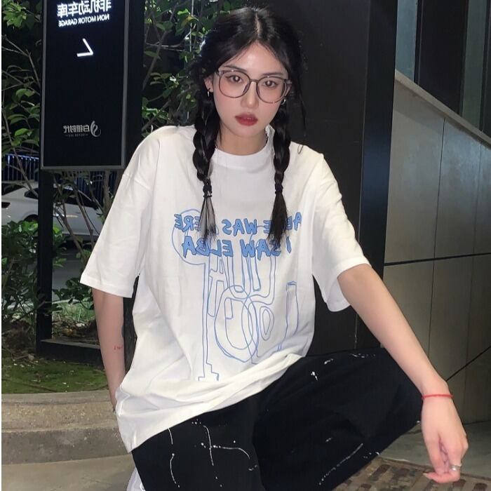 トレンドスタンダードラインプリントルーズTシャツメンズレディース コットン レトロ CHIL54767289347