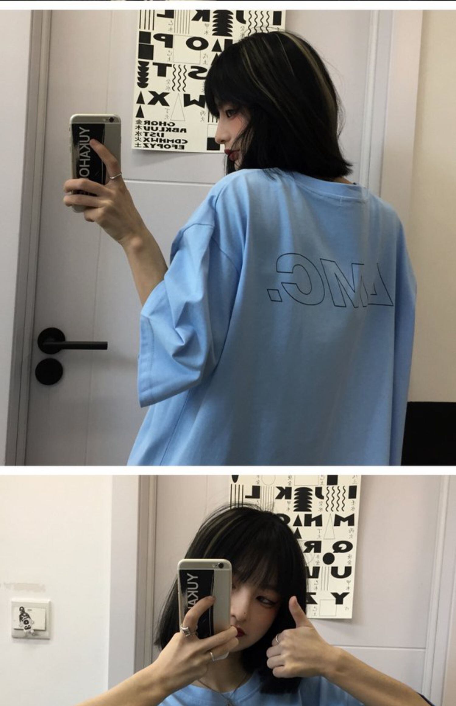 夏服Tシャツレディース韓国ファッショントレンドプリントルーズラウンドネック半袖スリーブトップス ショート ハーフスリーブ 夏物 Oネック スタイル デーモン90029550707