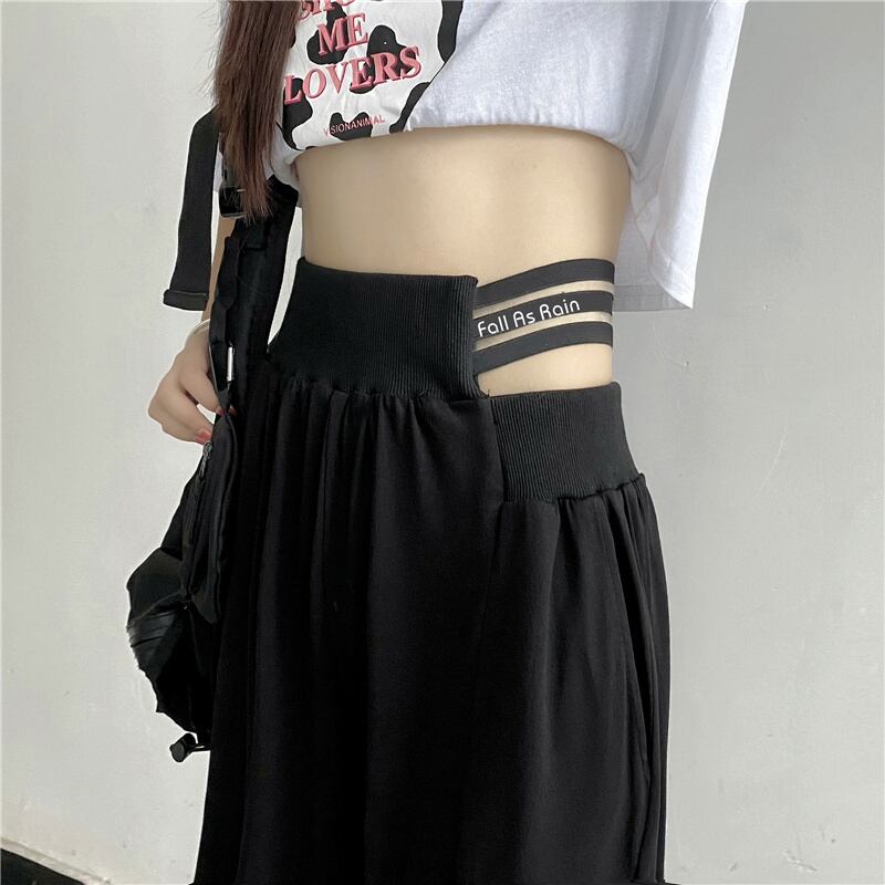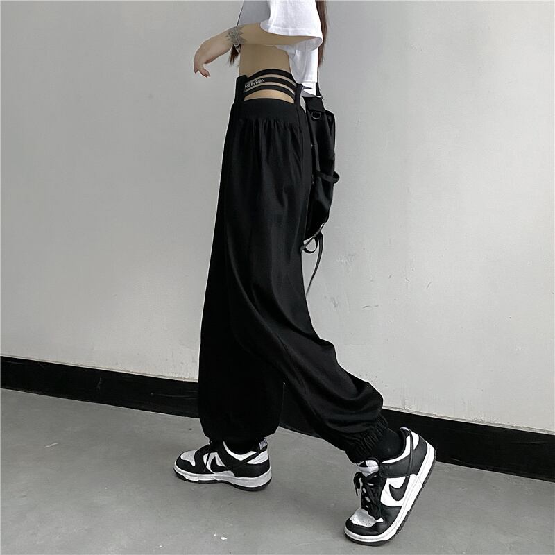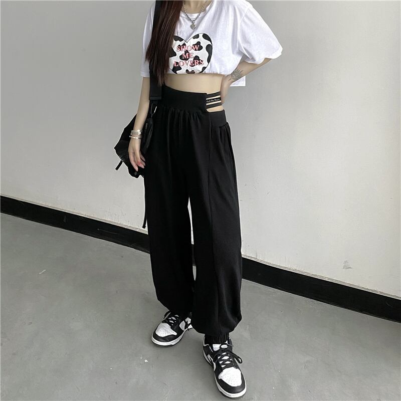 ハイウェストウェストカジュアルパンツ レディース夏服トレンドブラックレギンス ルーズ 夏物 ボーイズ ウエスト デーモン92858218704