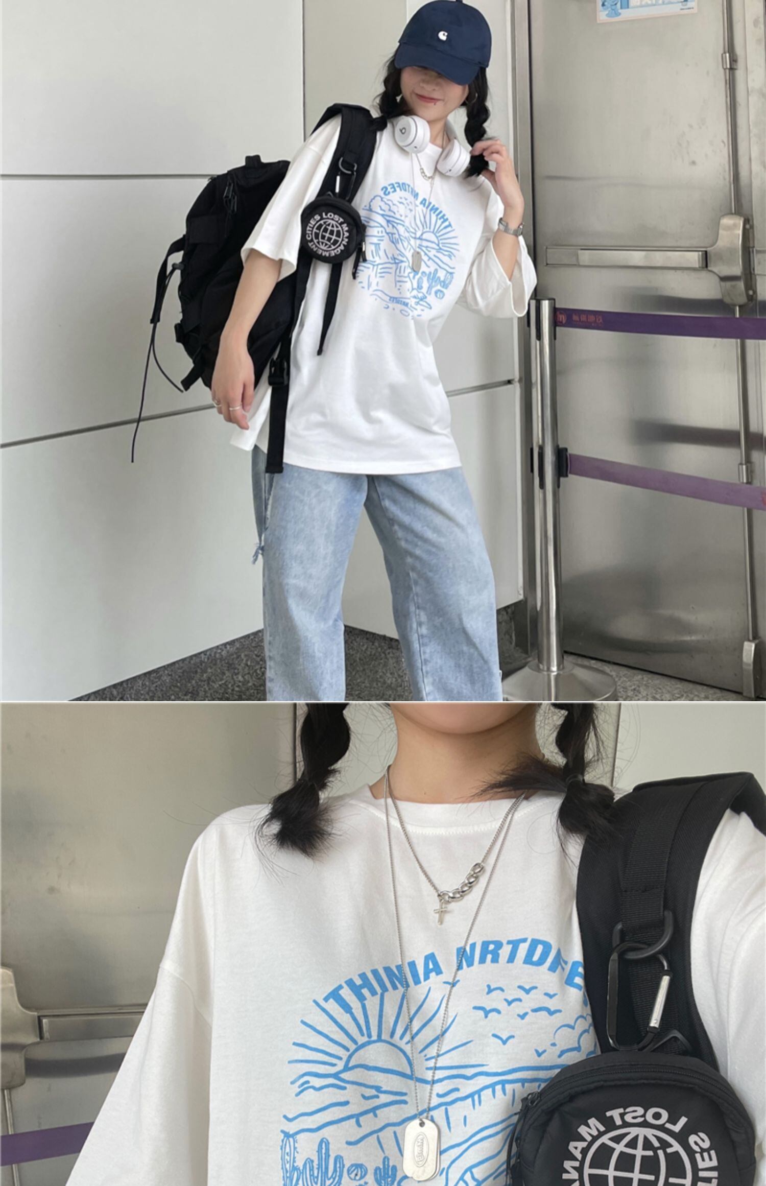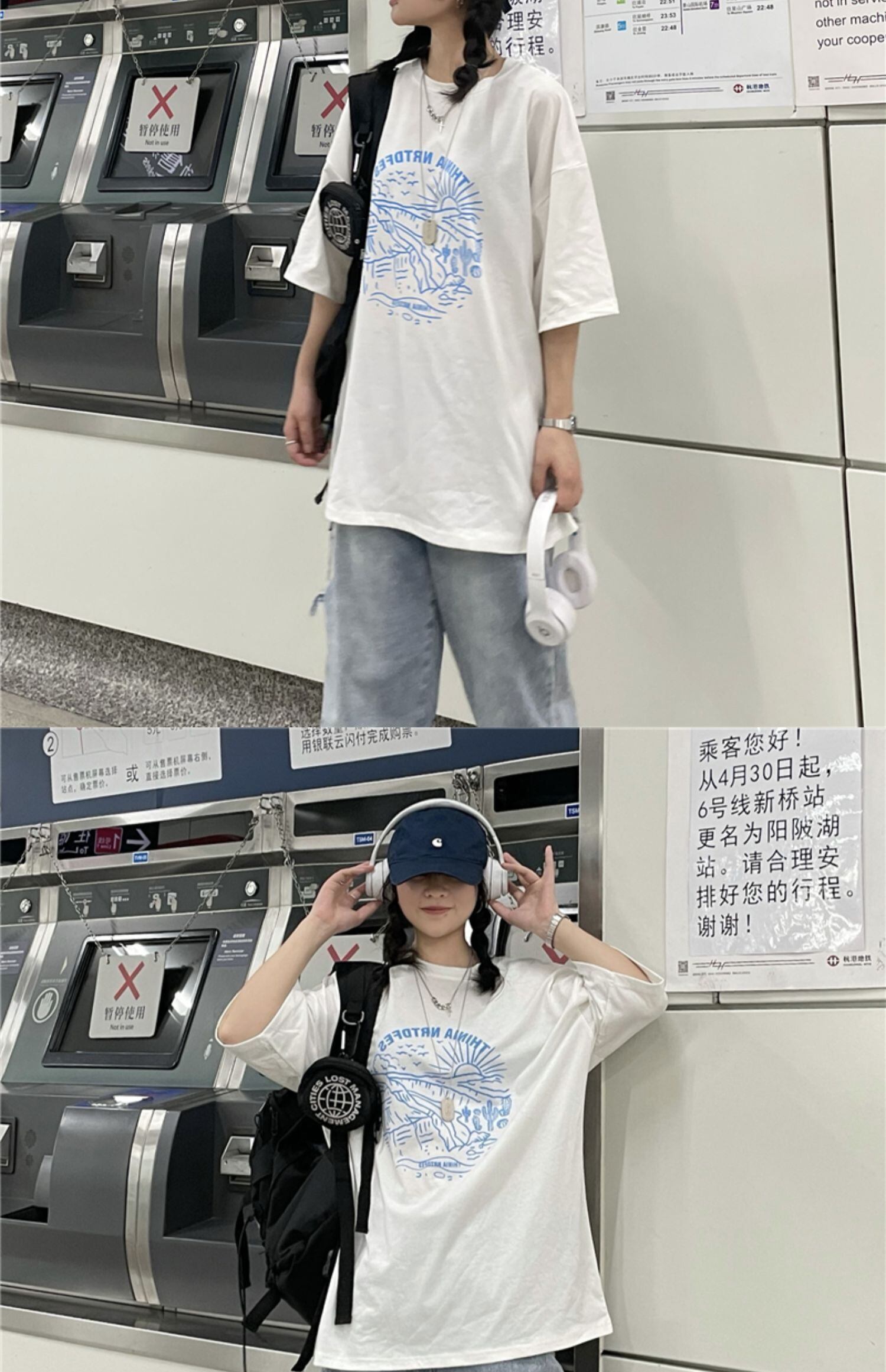 ホワイトブラウス レディース夏服韓国ファッショントレンドスタイルプリントルーズTシャツ 原宿 夏物 ボーイズ デーモン48349993226