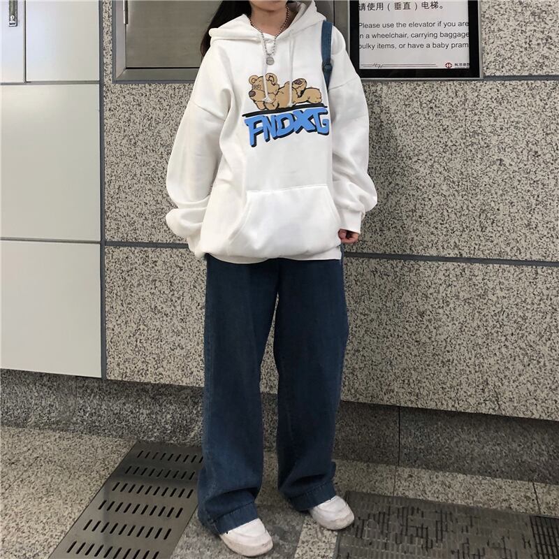 スプリングセーター レディース韓国ファッショントレンドスタンダードプリント柄厚みルーズフードジャケット レトロ 春物 ボーイズ スタイル デーモン19722278289