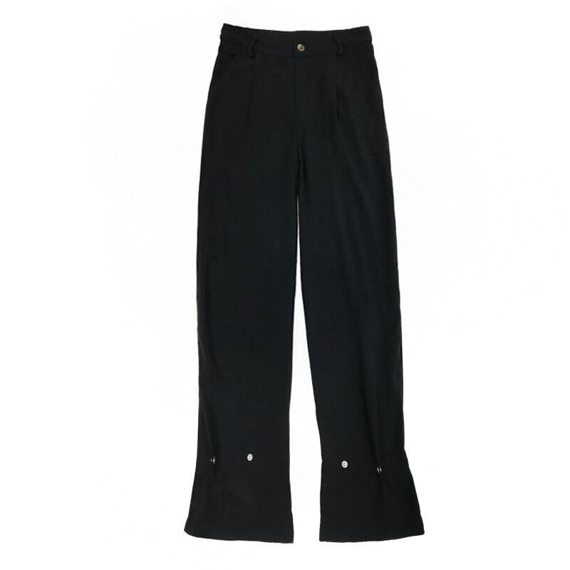 レディース夏服トレンドボタンワイドレッグパンツ ハイウェストウェストルーズスリムブラック 夏物 ワイドパンツ ウエスト デーモン78390955745