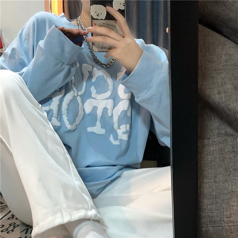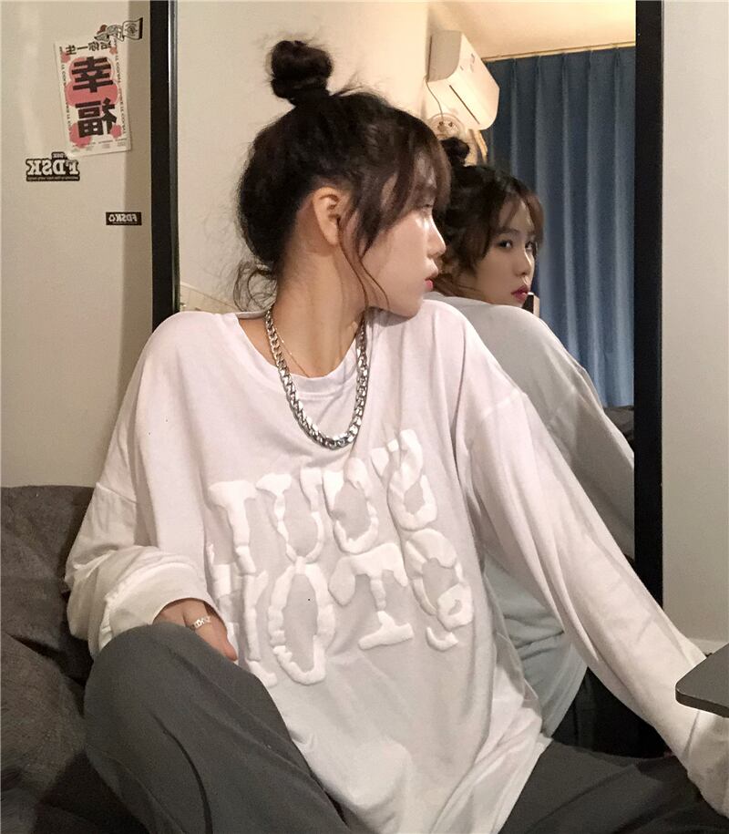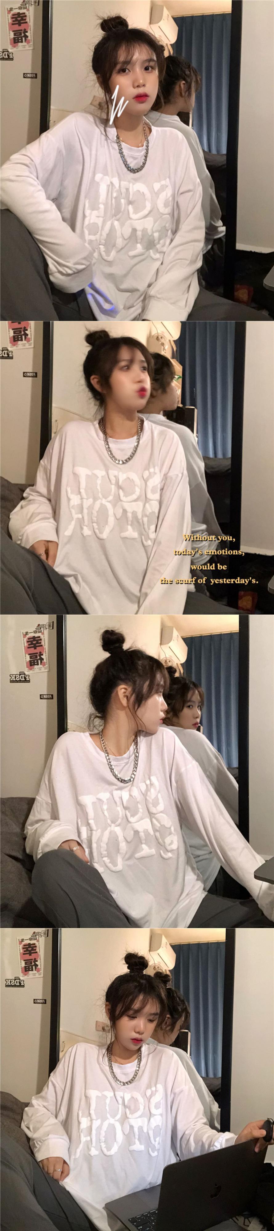 ゆったりシャツ 夏服韓国ファッショントレンドスタイルルーズラウンドネックTシャツトップス ロング 夏物 Oネック ボーイズ 長袖 デーモン84621190639