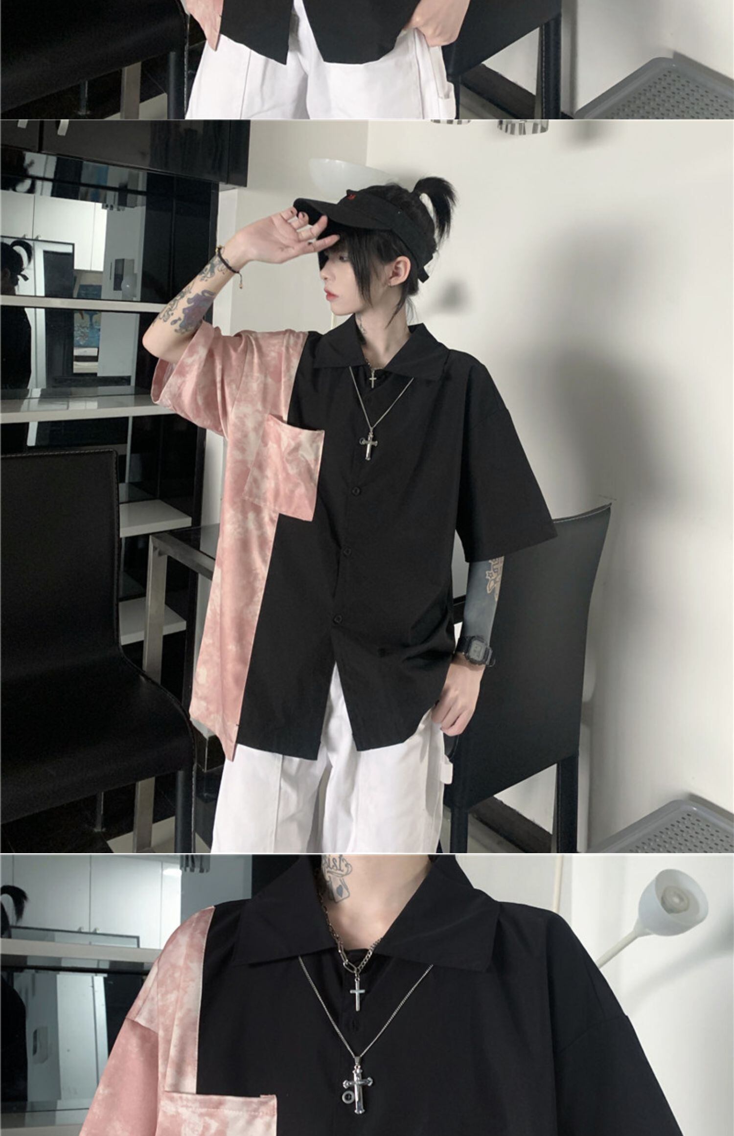 シャツ レディース夏服韓国ファッショントレンドルーズカジュアルトップス 夏物 ステッチ ボーイズ スタイル デーモン75772548530
