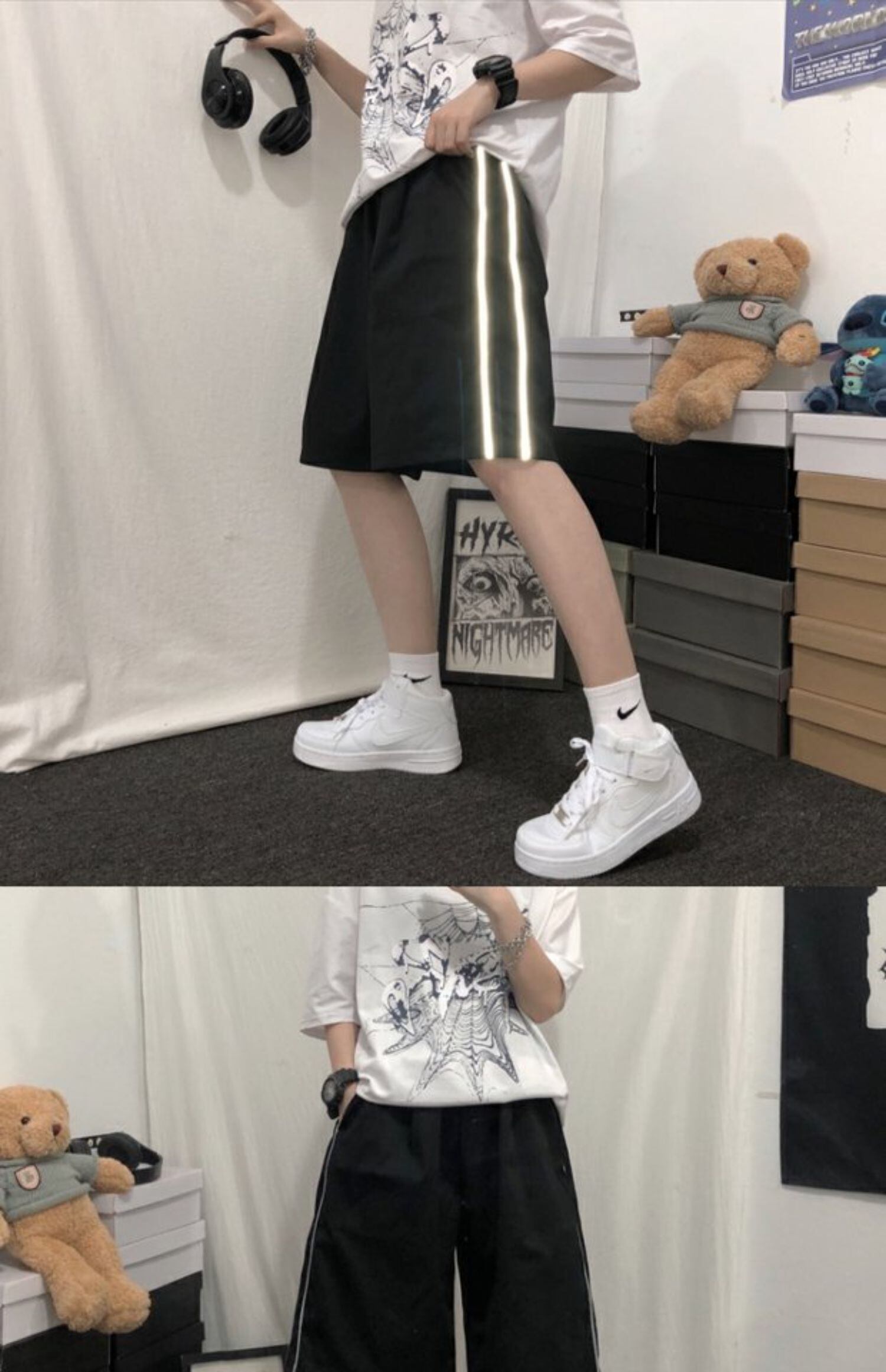 カジュアルショーツ レディース夏服トレンドストライプパンツ ルーズハイウェストウェスト 原宿 夏物 ボーイズ ウエスト デーモン45273619534