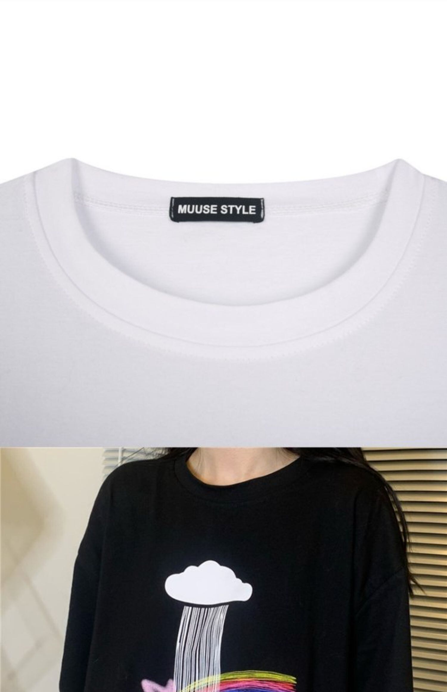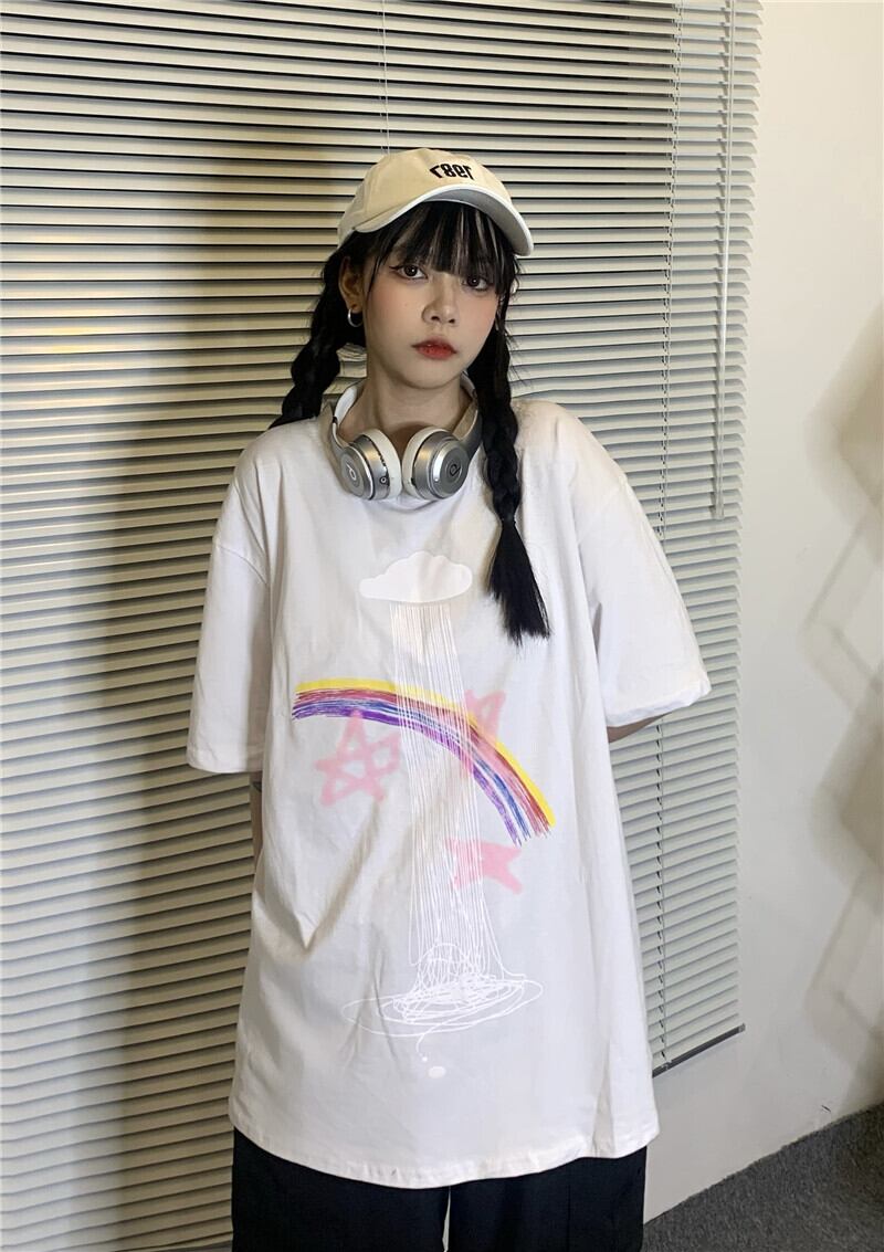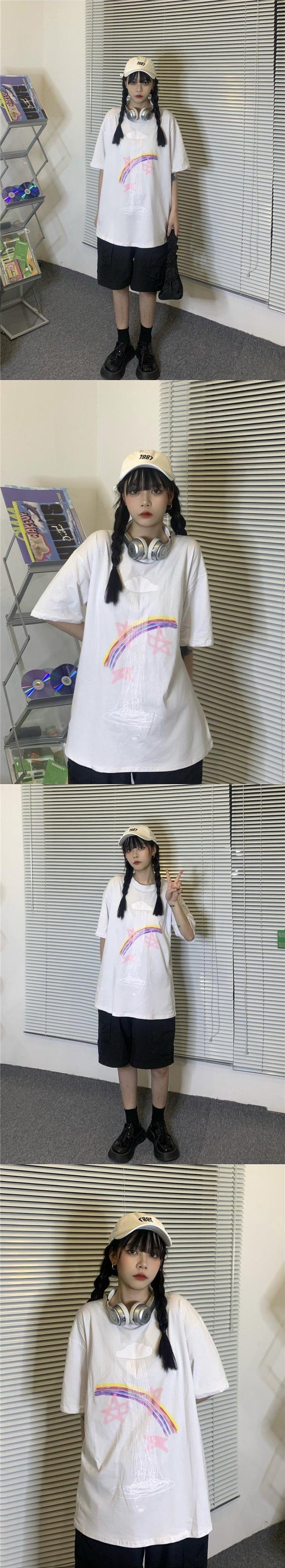 夏服レディースTシャツ韓国ファッショントレンドスタイルプリントブラックルーズトップス 原宿 夏物 デーモン33020190422