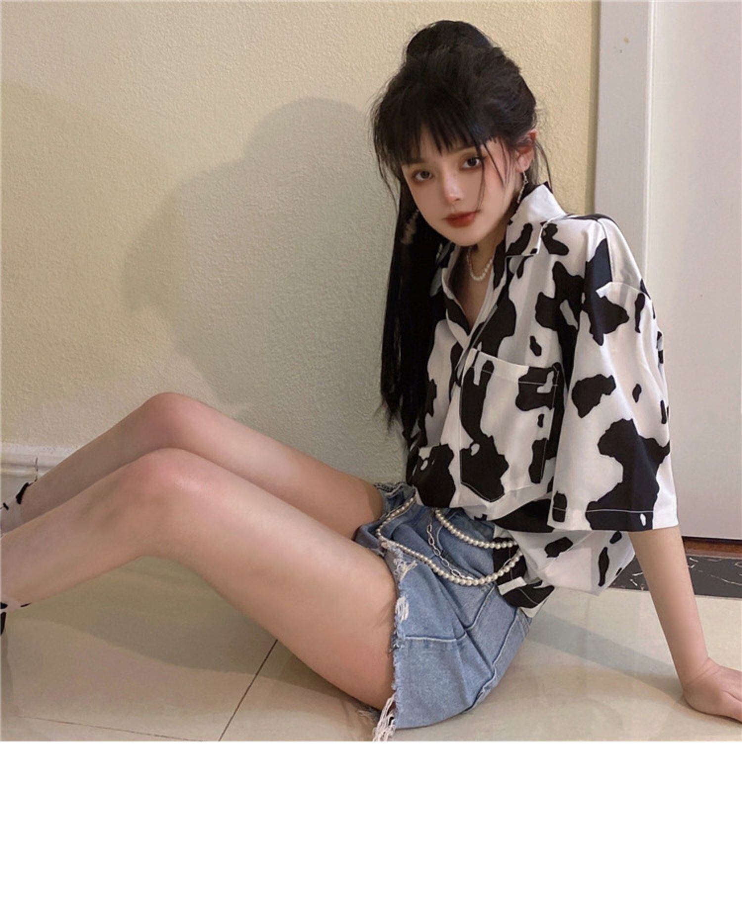 夏服シャツ レディース韓国ファッショントレンドスタンダードルーズカジュアル レトロ 夏物 スタイル デーモン494938488