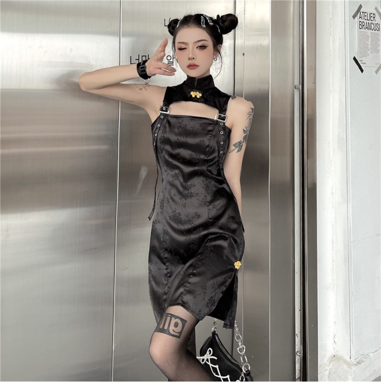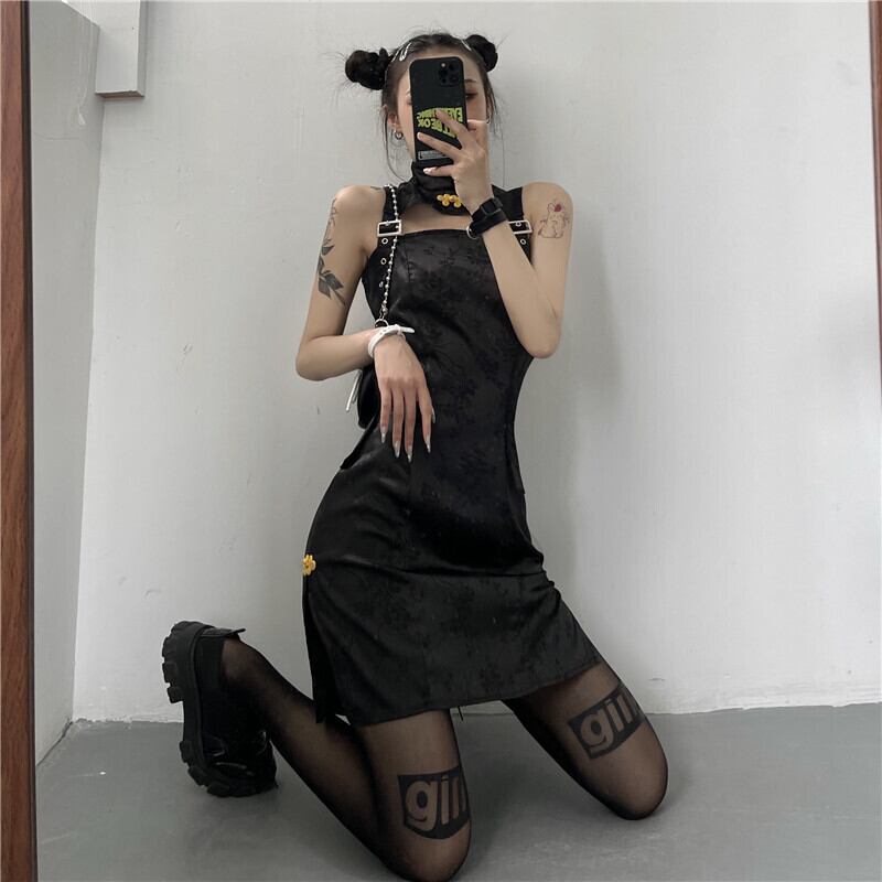 スカート レディース夏服トレンドダークウェストAラインワンピースブラック 夏物 ウエスト デーモン16197524980