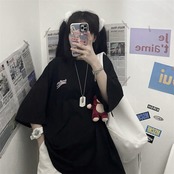 Tシャツトップス レディース夏服韓国ファッショントレンドプリントルーズラウンドネック半袖スリーブ ショート ハーフスリーブ 夏物 Oネック ボーイズ スタイル デーモン35677385248