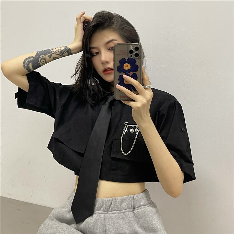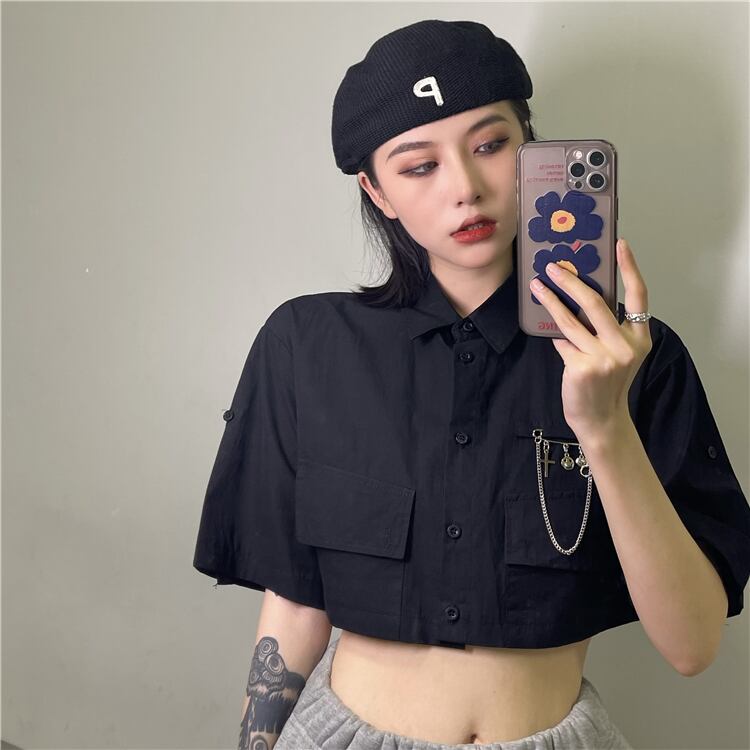 ショートシャツ レディース夏服韓国ファッショントレンドルーズトップス 夏物 デーモン37364821291