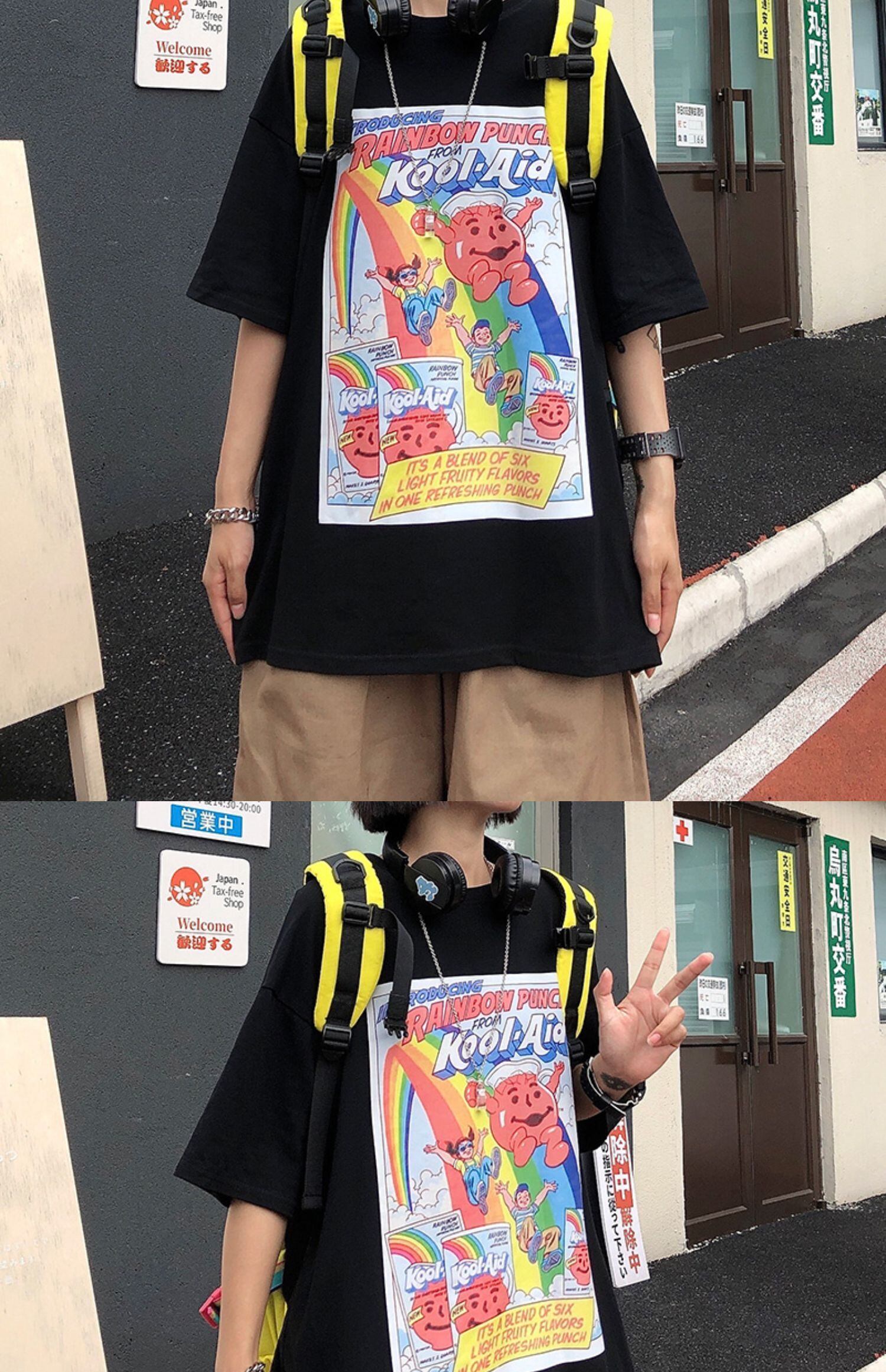 Tシャツシャツ 夏服韓国ファッショントレンドプリントルーズブラック 夏物 スタイル デーモン88665301078