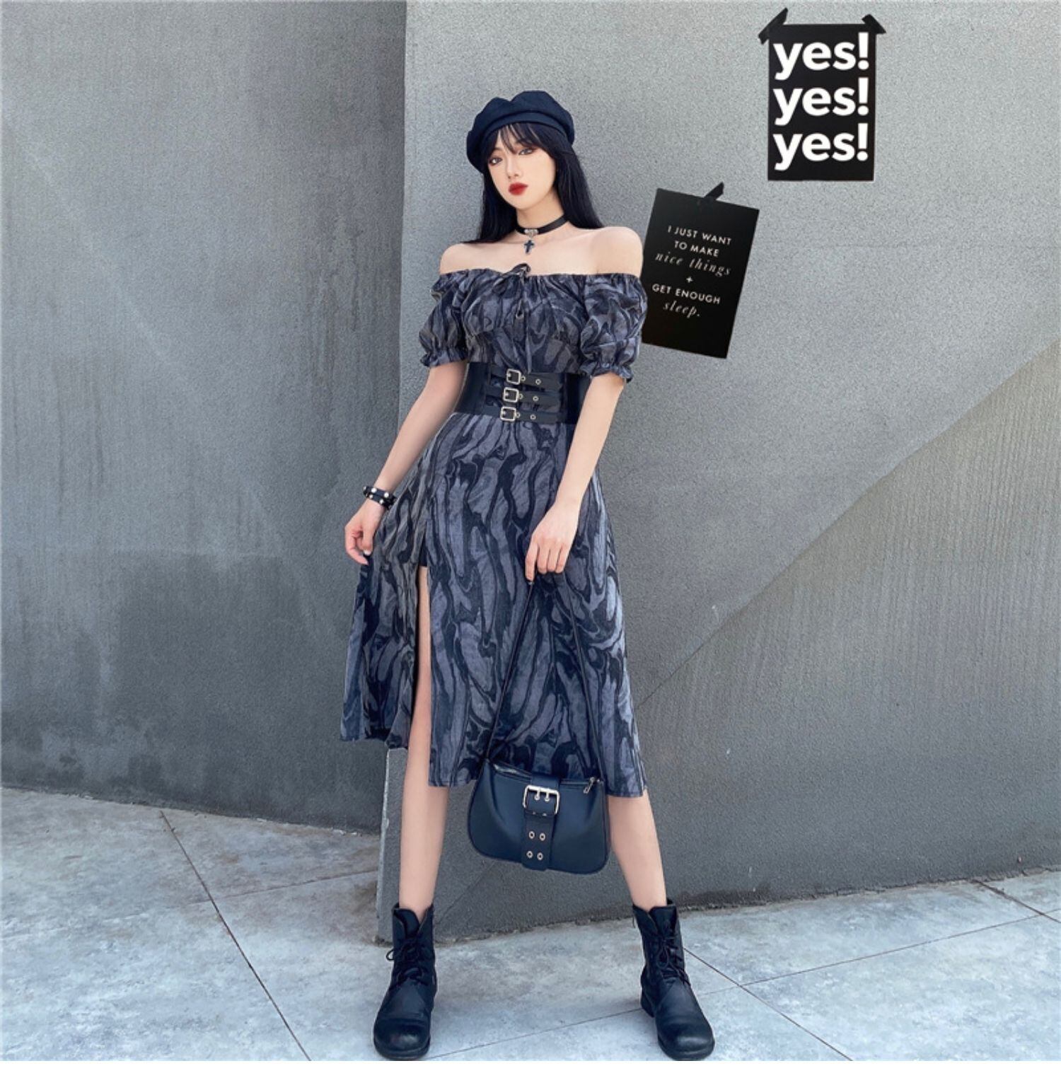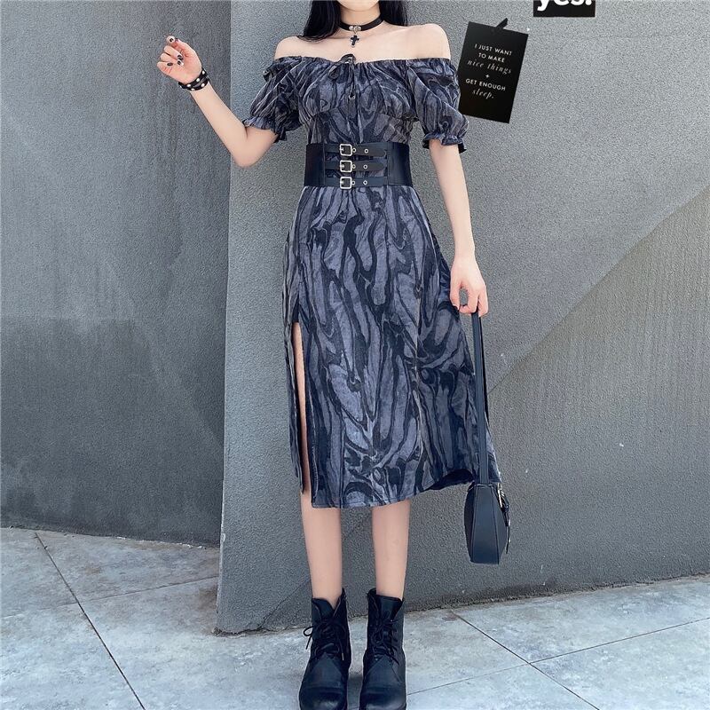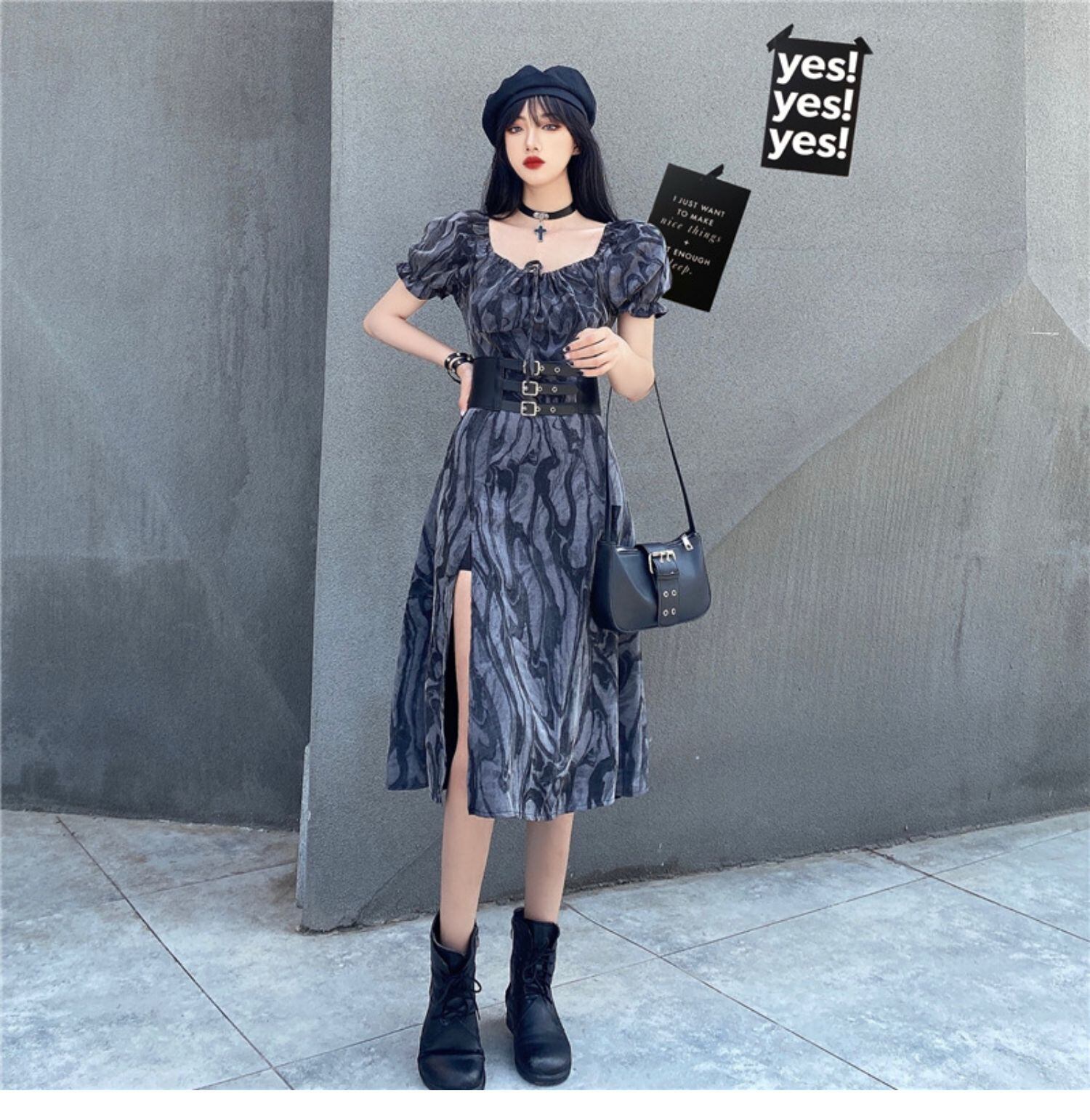 ワンピースレディース夏服韓国ファッショントレンドダークスカート 夏物 スタイル ミドル丈 デーモン75207352461