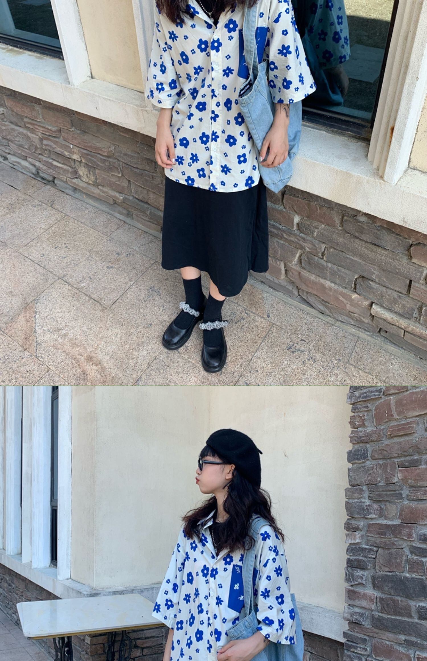 シャツ Tシャツレディース夏服韓国ファッショントレンドスタンダードプリント柄ルーズ レトロ 夏物 フラワーデザイン スタイル デーモン43092448203