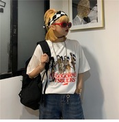 トップス 夏服韓国ファッショントレンドプリントホワイトルーズTシャツ 夏物 ボーイズ スタイル デーモン40048253157